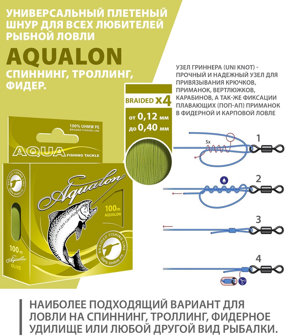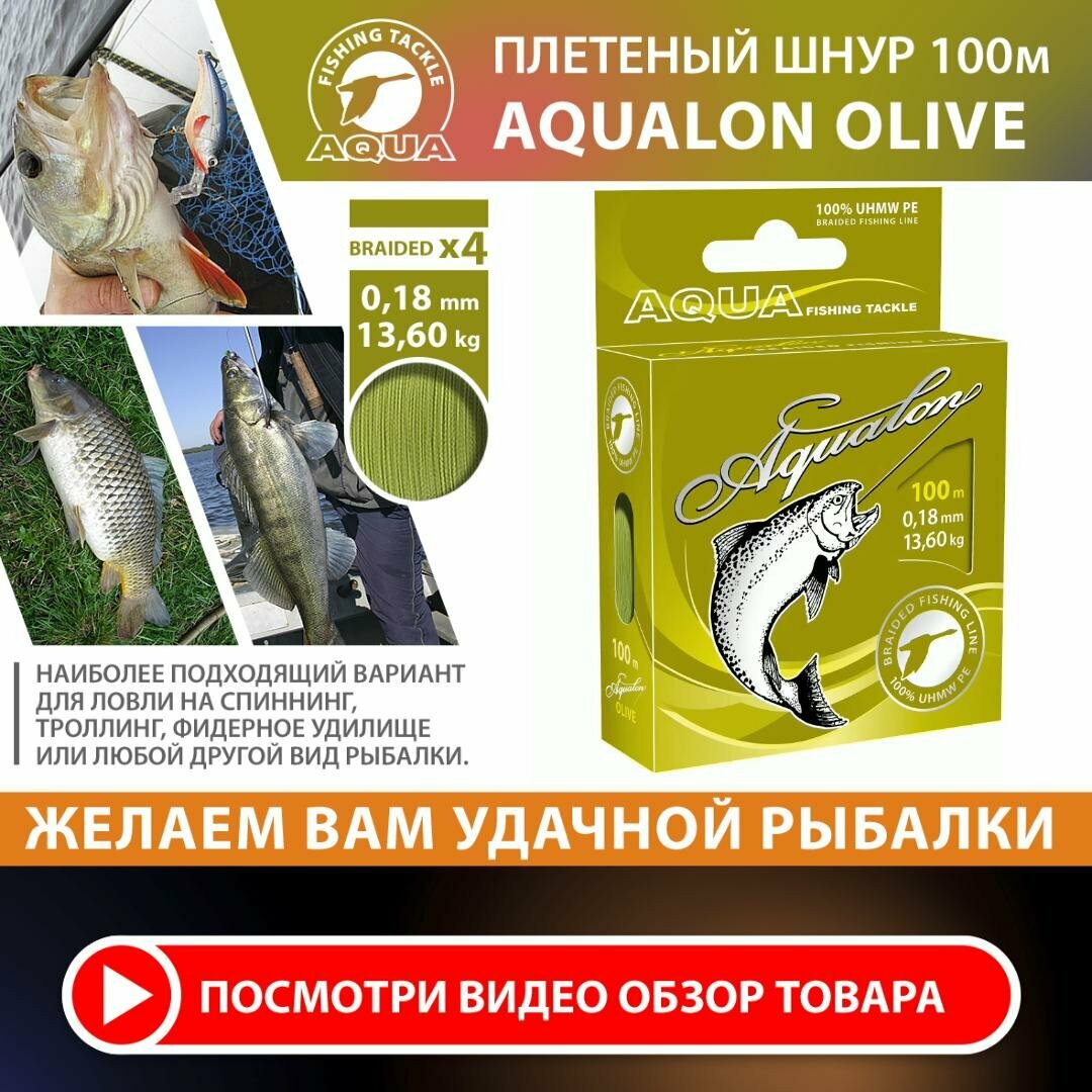 Плетеный шнур для рыбалки AQUA Aqualon 100m 0.18mm 13.6kg оливковый интересное: