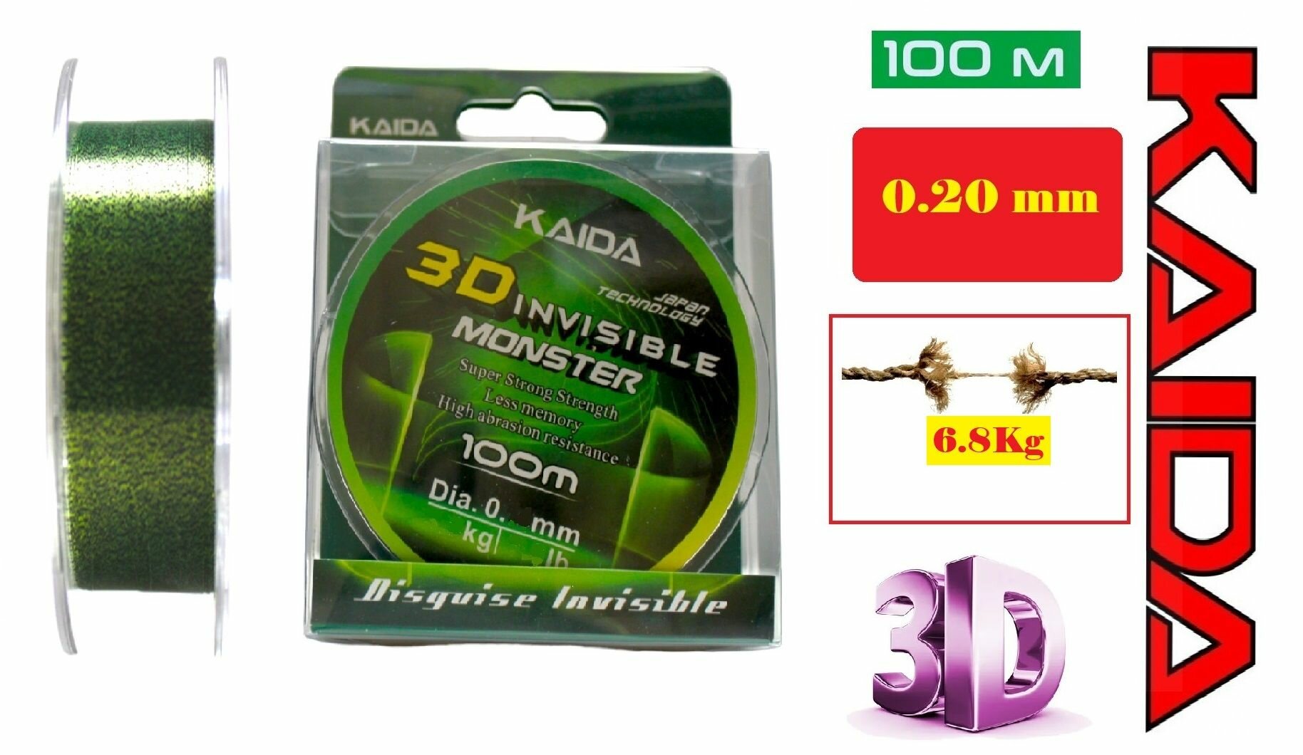 Купить Монофильная леска тонущая KAIDA 3D Invisible Monster-100м 0.20mm