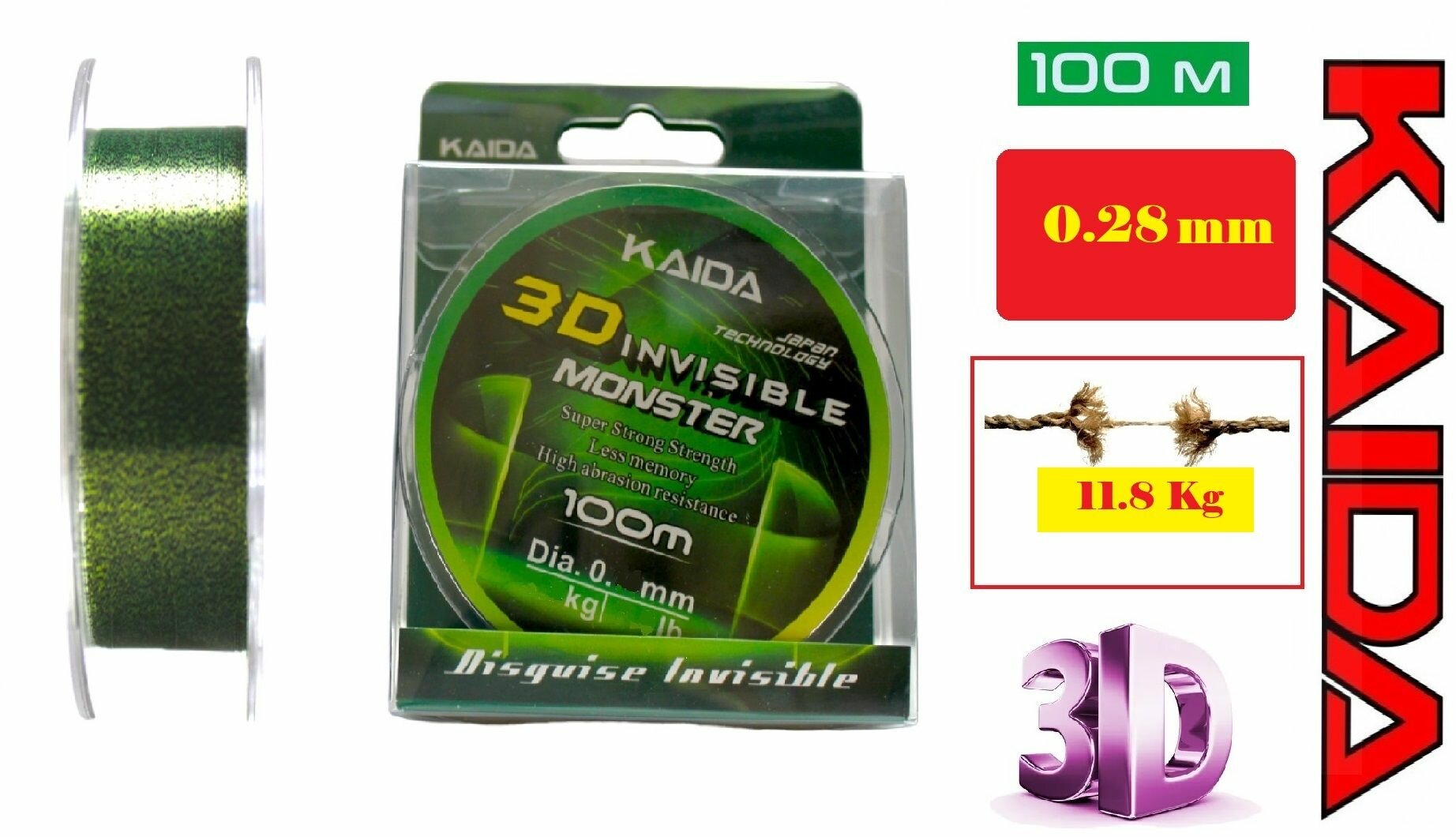 Купить Монофильная леска тонущая KAIDA 3D Invisible Monster-100м 0.28mm