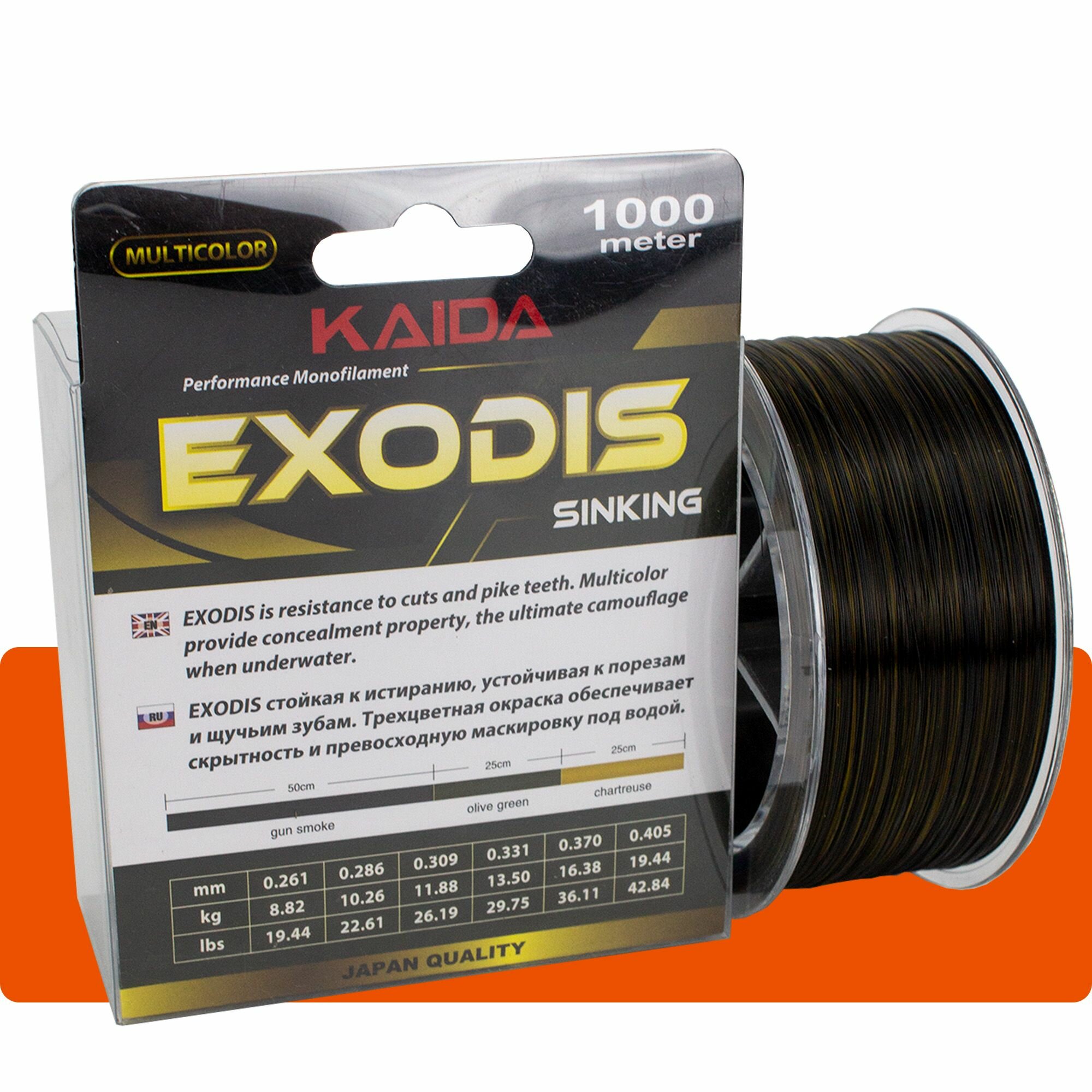 Леска для рыбалки монофильная тонущая камуфляж Карповая Леска KAIDA EXODIS Sinking 0.331мм / 13.50кг длина 1000 м