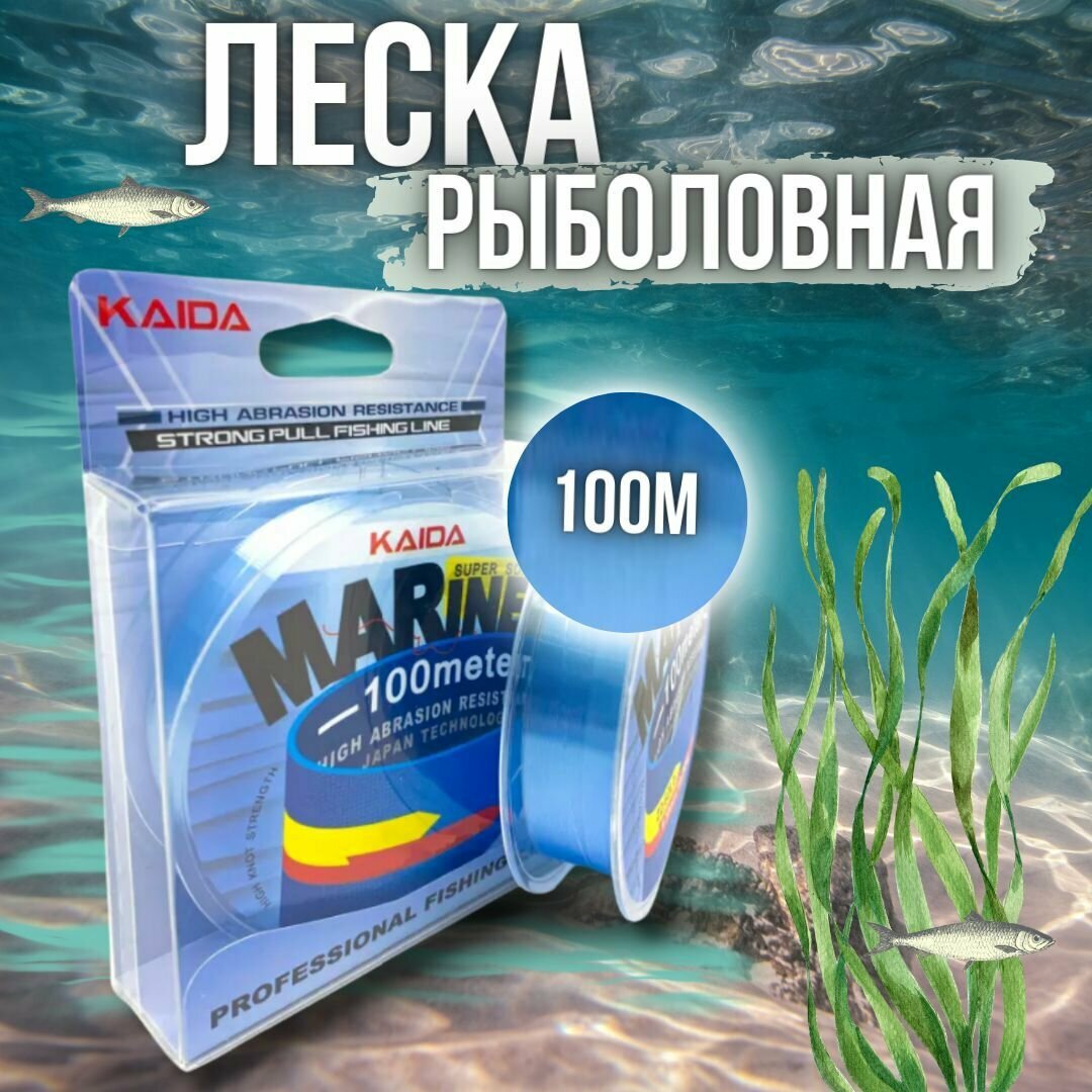 Леска монофильная Kaida Mariner толщина - 0,30мм тест - 10.26кг длина - 100м цвет - голубой