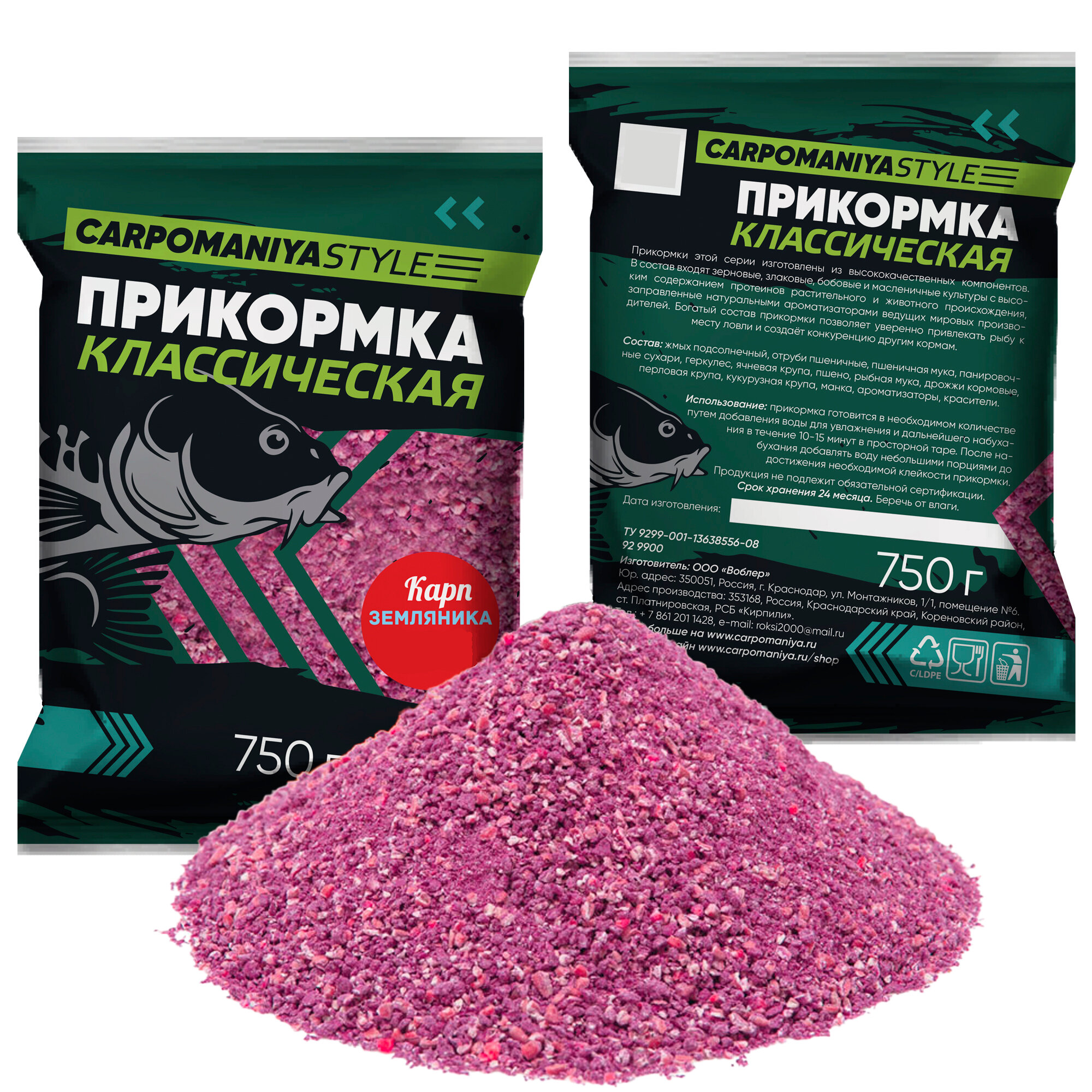 Прикормка серия Классическая Карп земляника 750г интересное: