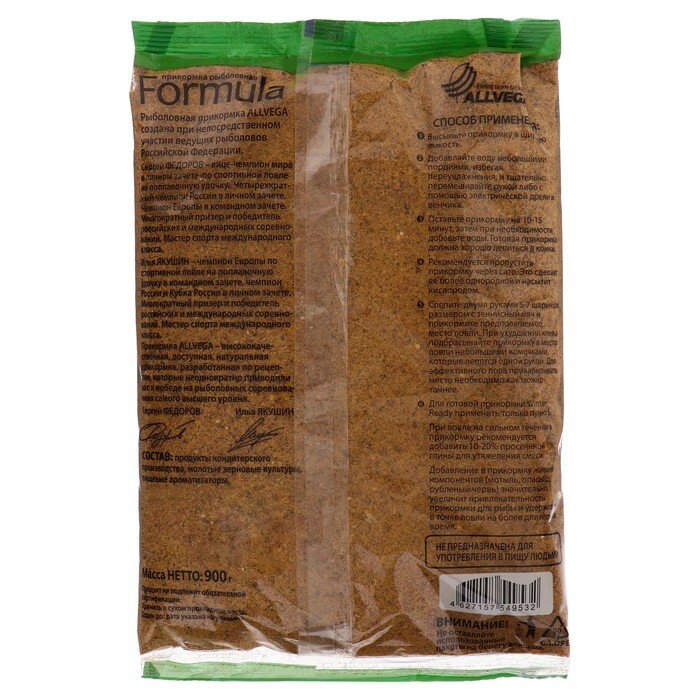 Прикормка для рыбалки ALLVEGA Formula Карп карась 1 пачка 0.9кг