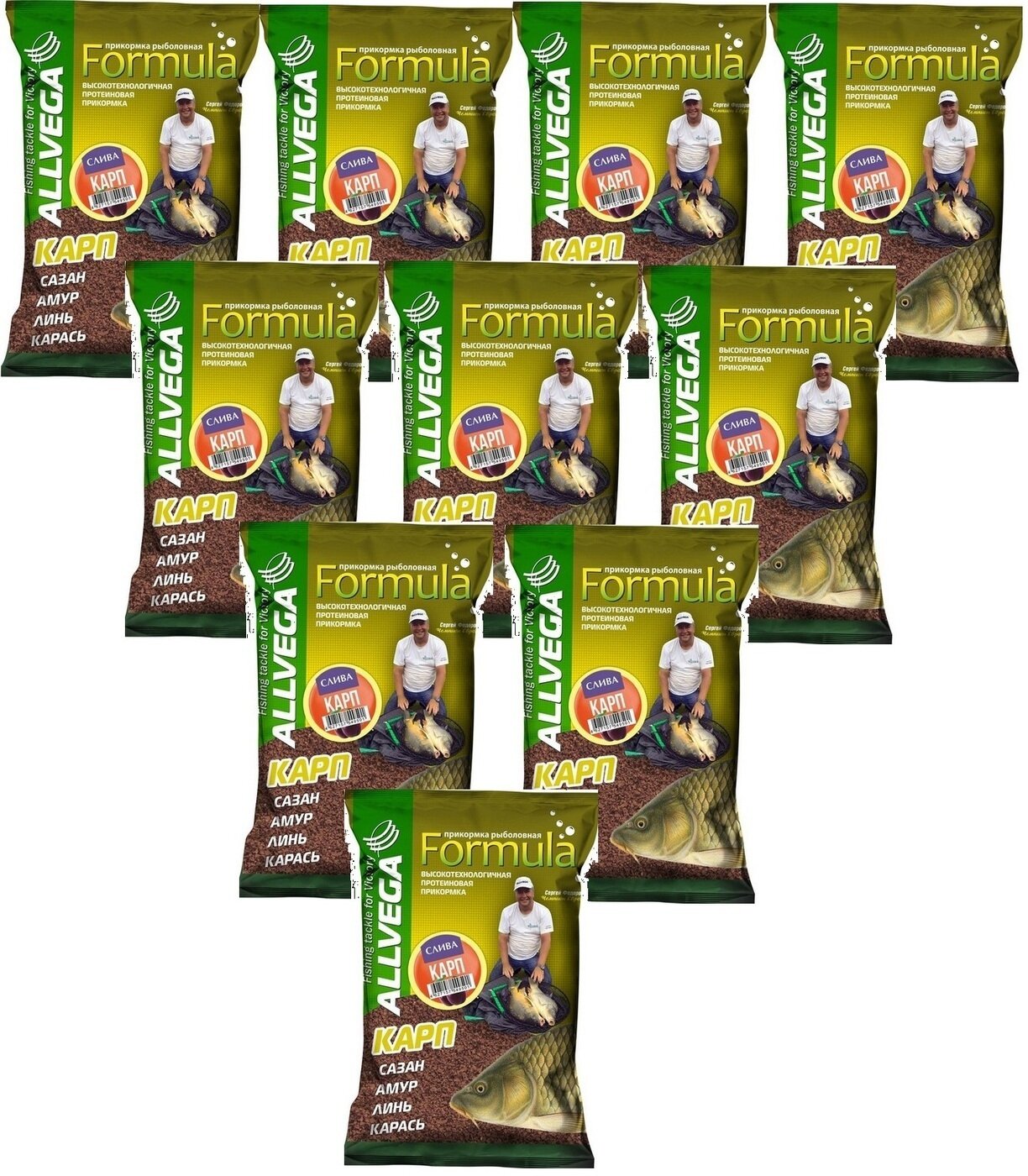 Прикормка для рыбалки ALLVEGA Formula карп слива 10 пачек по 0.9 кг