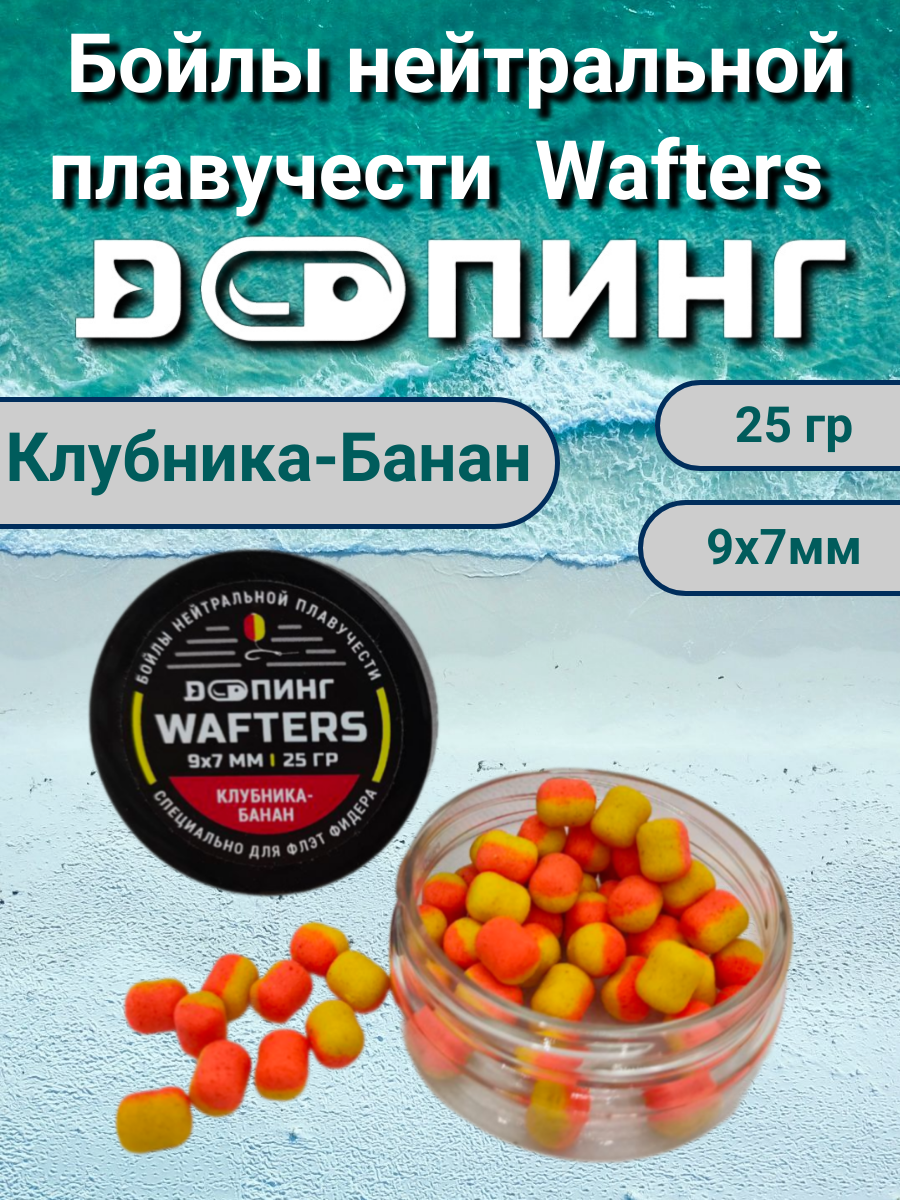 Купить Бойлы нейтральной плавучести Допинг Wafters Клубника-Банан 9х7мм 25гр