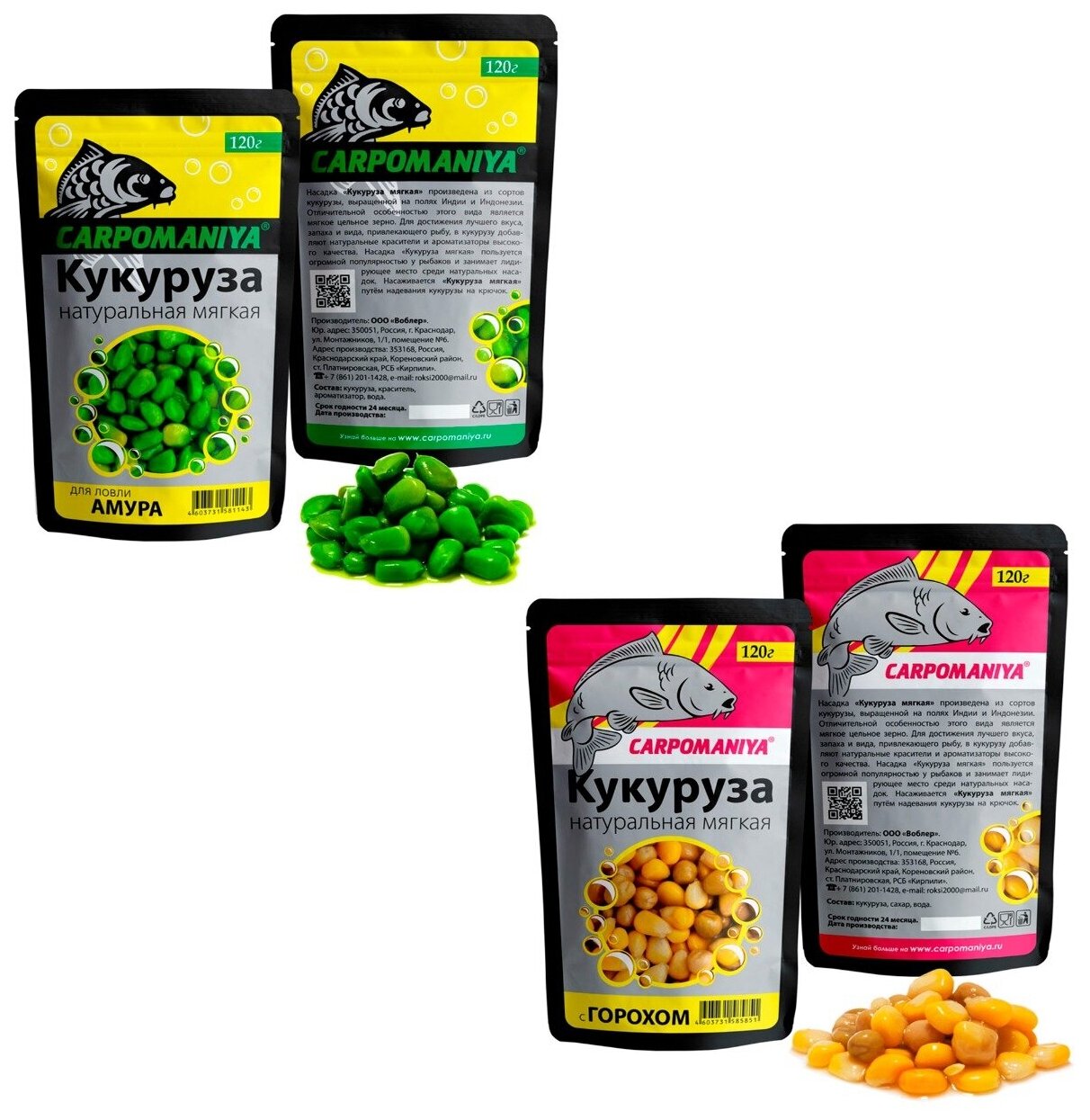 Набор кукуруза в пакетах для ловли Амура, натуральная с Горохом 120 г (мягкая) интересное: