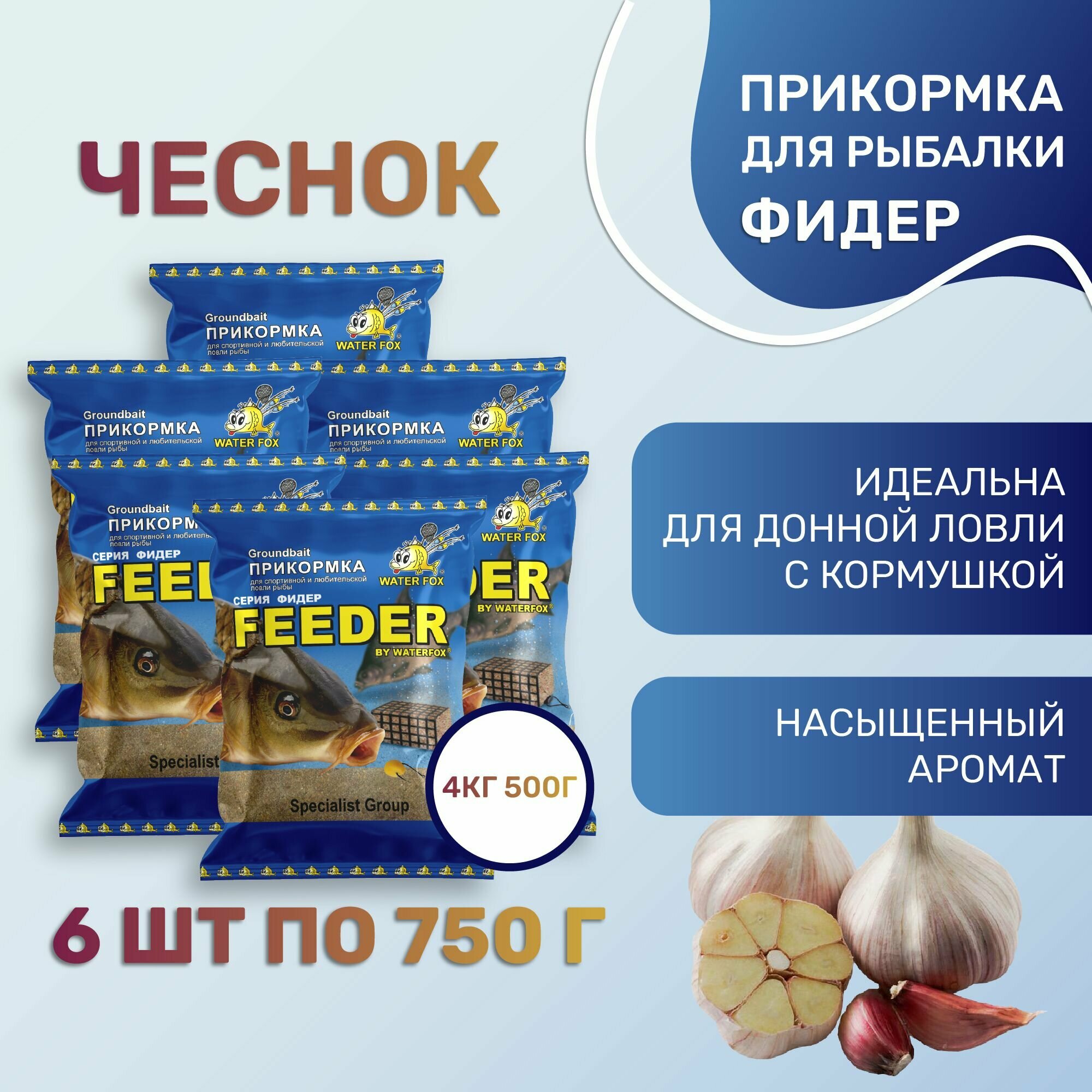 Купить Прикормка для рыбалки натуральная WATER FOX Серия Фидер Чеснок 6шт по 750 г