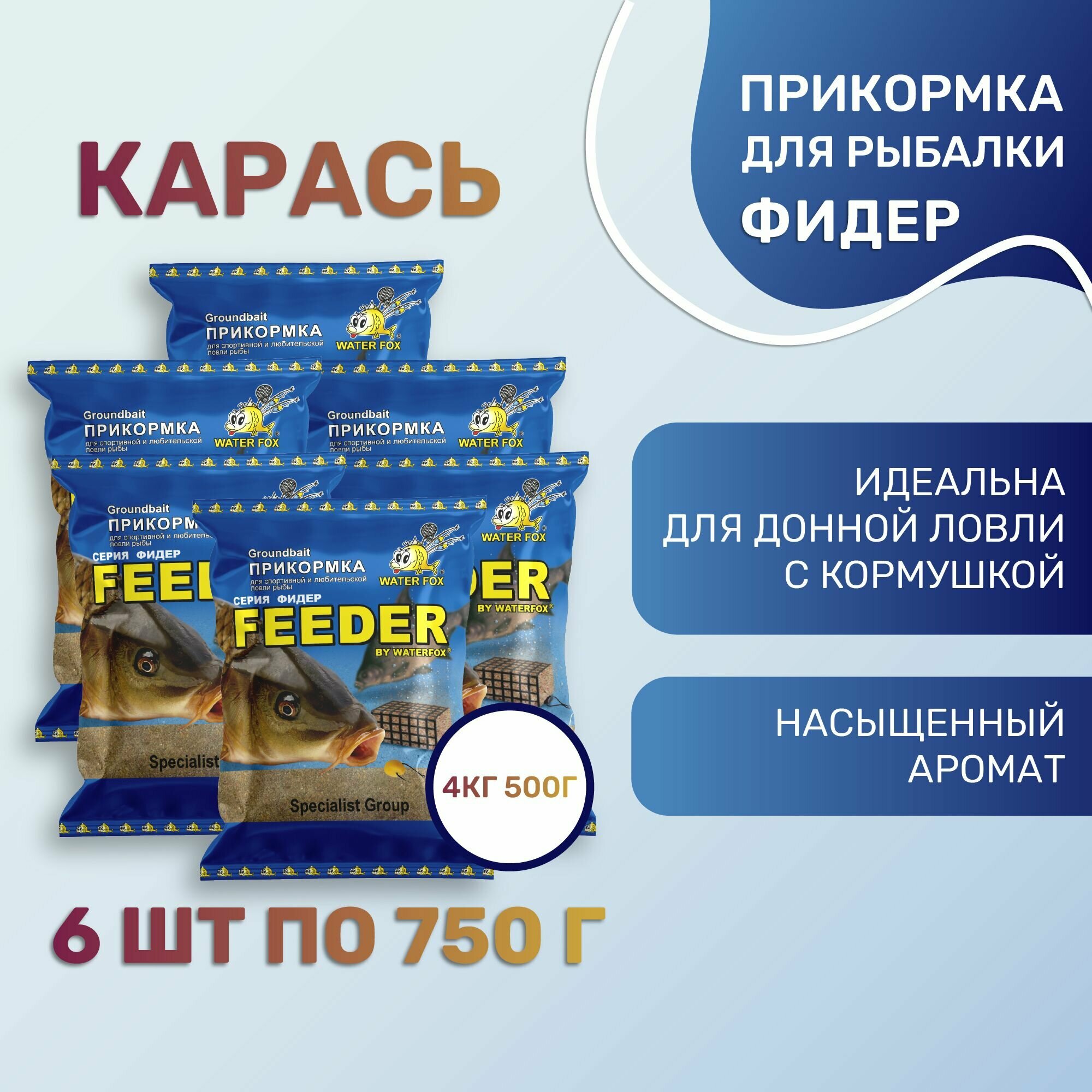 Купить Прикормка для рыбалки натуральная WATER FOX Серия Фидер Карась 6шт по 750 г