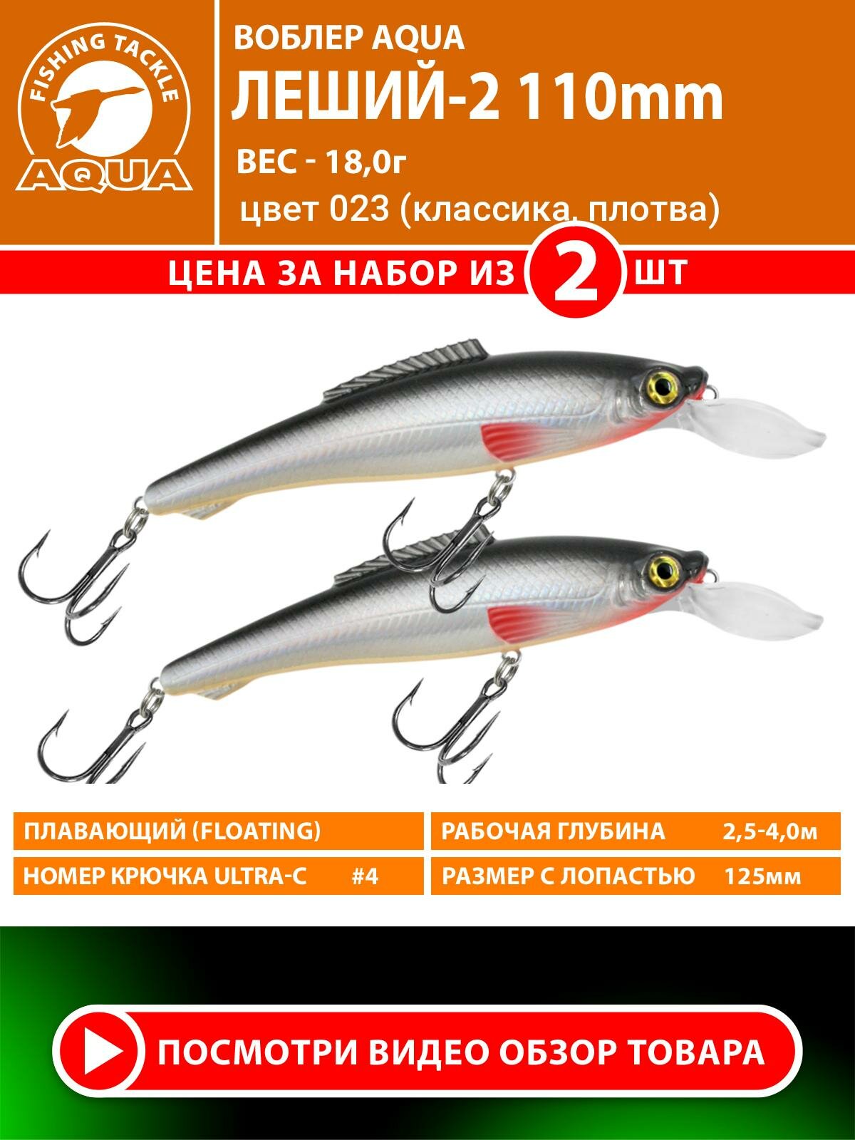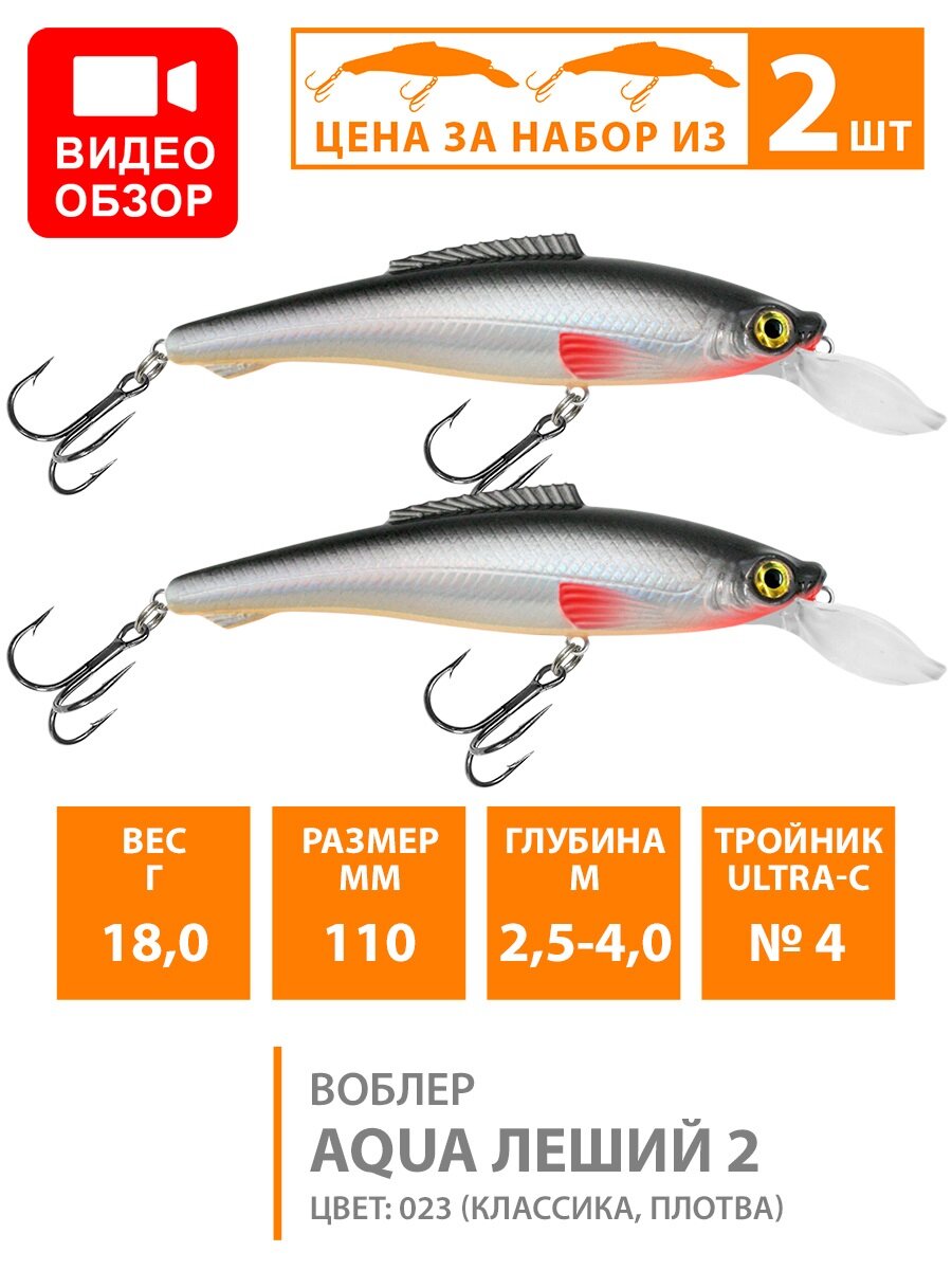 Ниже Вы можете прочитать отзывы на Воблер для рыбалки плавающий AQUA Леший-2 110mm 18g заглубление от 2.5 до 4m цвет 023 2шт, ознакомится с подробными характеристиками, посмотреть интересные обзоры и фотографии на Воблер для рыбалки плавающий AQUA Леший-2 110mm 18g заглубление от 2.5 до 4m цвет 023 2шт.