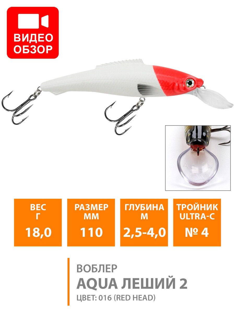 Ниже Вы можете прочитать отзывы на Воблер для рыбалки плавающий AQUA Леший-2 110mm 18g заглубление от 2.5 до 4m цвет 016, ознакомится с подробными характеристиками, посмотреть интересные обзоры и фотографии на Воблер для рыбалки плавающий AQUA Леший-2 110mm 18g заглубление от 2.5 до 4m цвет 016.
