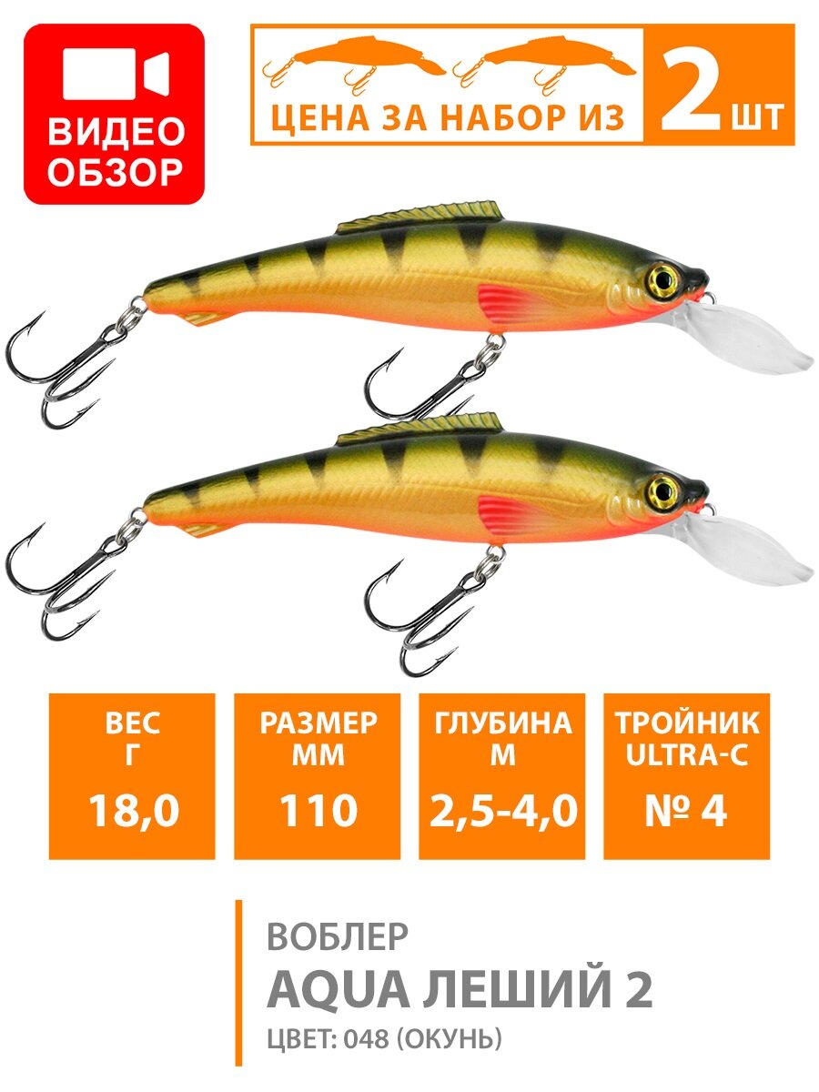 Ниже Вы можете прочитать отзывы на Воблер для рыбалки плавающий AQUA Леший-2 110mm 18g заглубление от 2.5 до 4m цвет 048 2шт, ознакомится с подробными характеристиками, посмотреть интересные обзоры и фотографии на Воблер для рыбалки плавающий AQUA Леший-2 110mm 18g заглубление от 2.5 до 4m цвет 048 2шт.