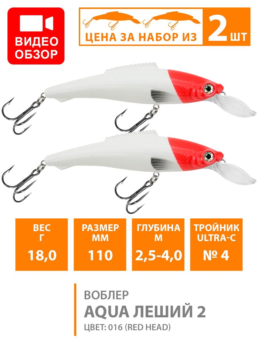 Ниже Вы можете прочитать отзывы на Воблер для рыбалки плавающий AQUA Леший-2 110mm 18g заглубление от 2.5 до 4m цвет 016 2шт, ознакомится с подробными характеристиками, посмотреть интересные обзоры и фотографии на Воблер для рыбалки плавающий AQUA Леший-2 110mm 18g заглубление от 2.5 до 4m цвет 016 2шт.