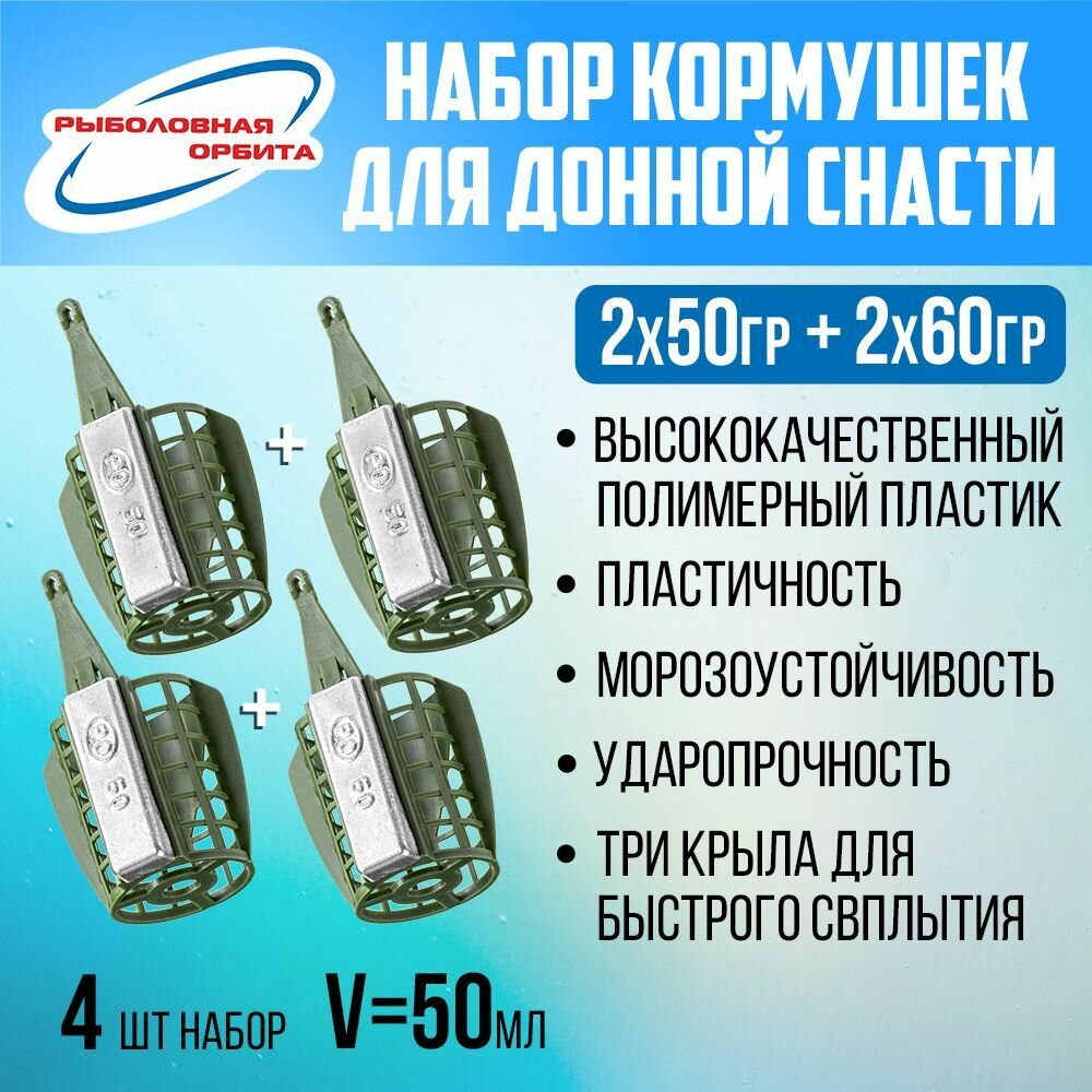 Кормушки для фидерной рыбалки "Рыболовная Орбита", набор, 4шт. 2х50гр+2х60гр интересное: