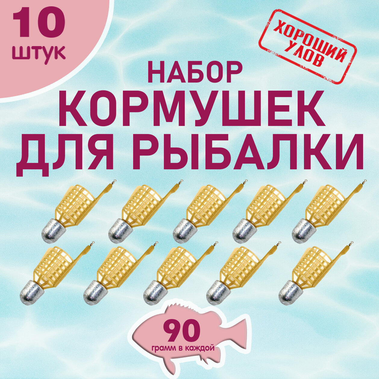 Набор рыболовных кормушек Пуля, кормушка фидерная снасть для рыбалки, уп. 10 шт, вес 90 гр.