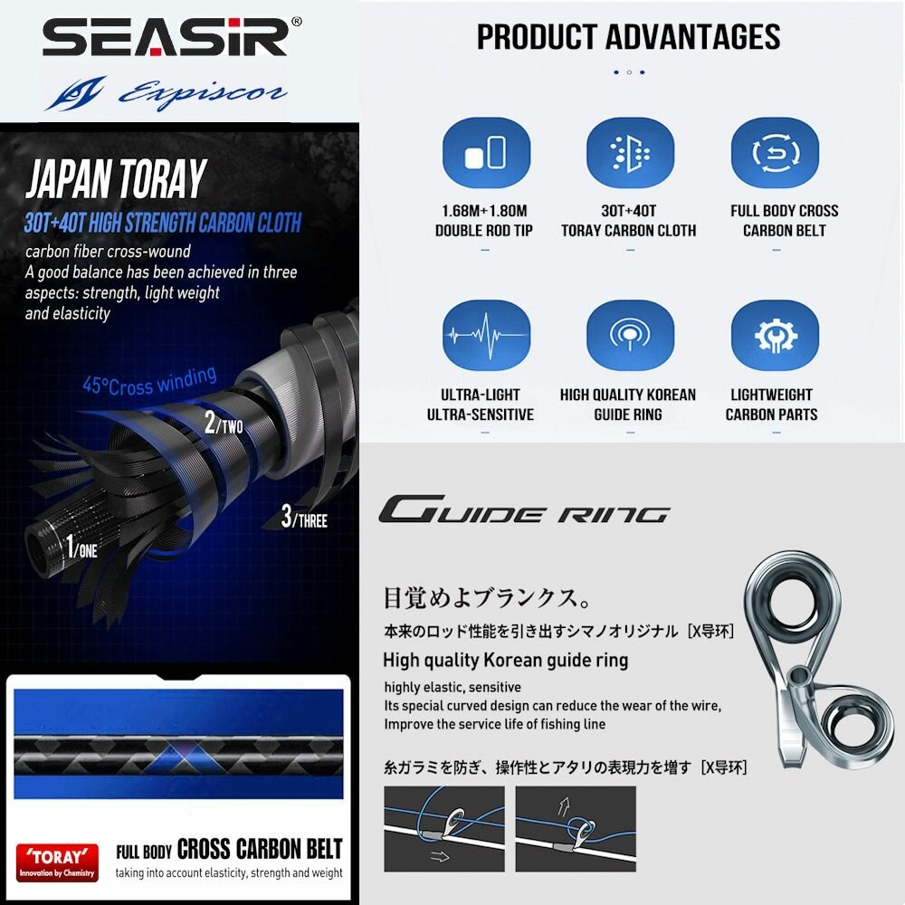 Спиннинг ультралайт SEASIR Expiscor S602L/UL с двумя вершинками 1,68М + 1,8М, action: Fast, power: UL, 2,5-5гр. интересное: