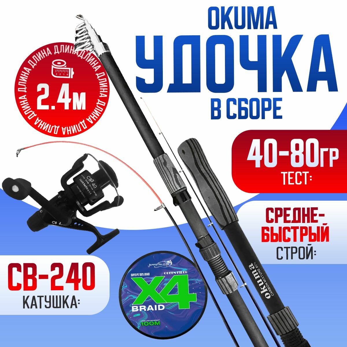 Купить Удочка для рыбалки летняя в сборе 2.4 м. тест: 40-80 г с катушкой СВ 240