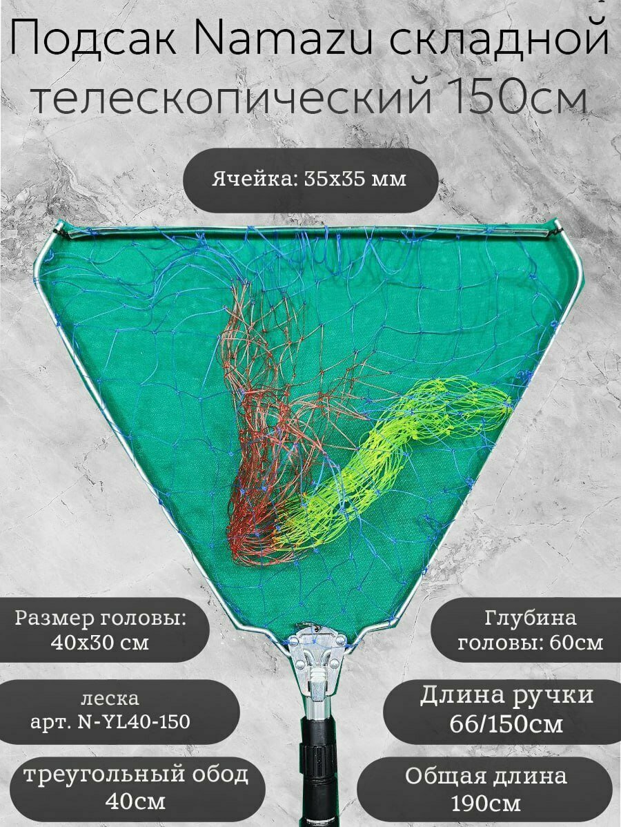 Подсак Namazu складной телескопический 150см, треугольный обод 40см, леска интересное:
