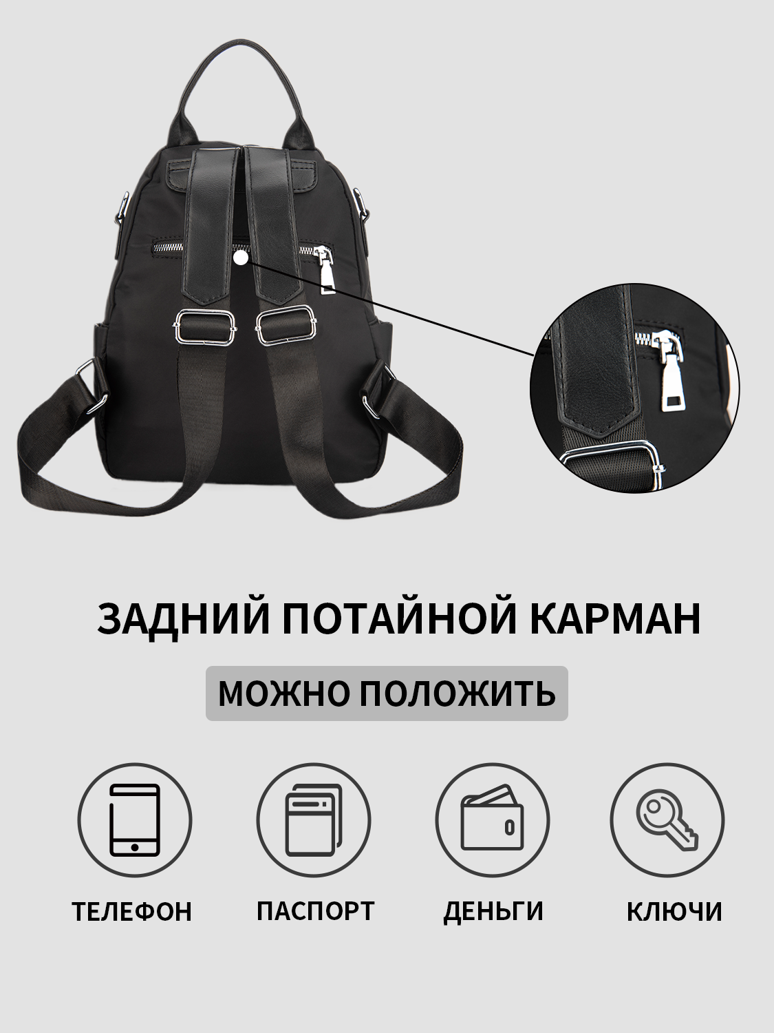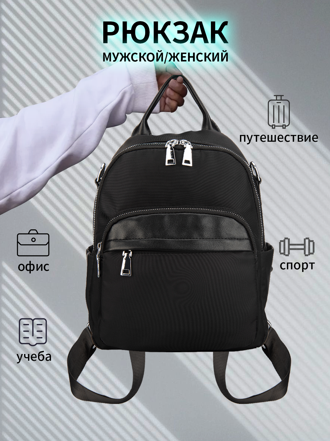 Городской женский рюкзак ROB&S, текстильный, полиэстер, черный интересное: