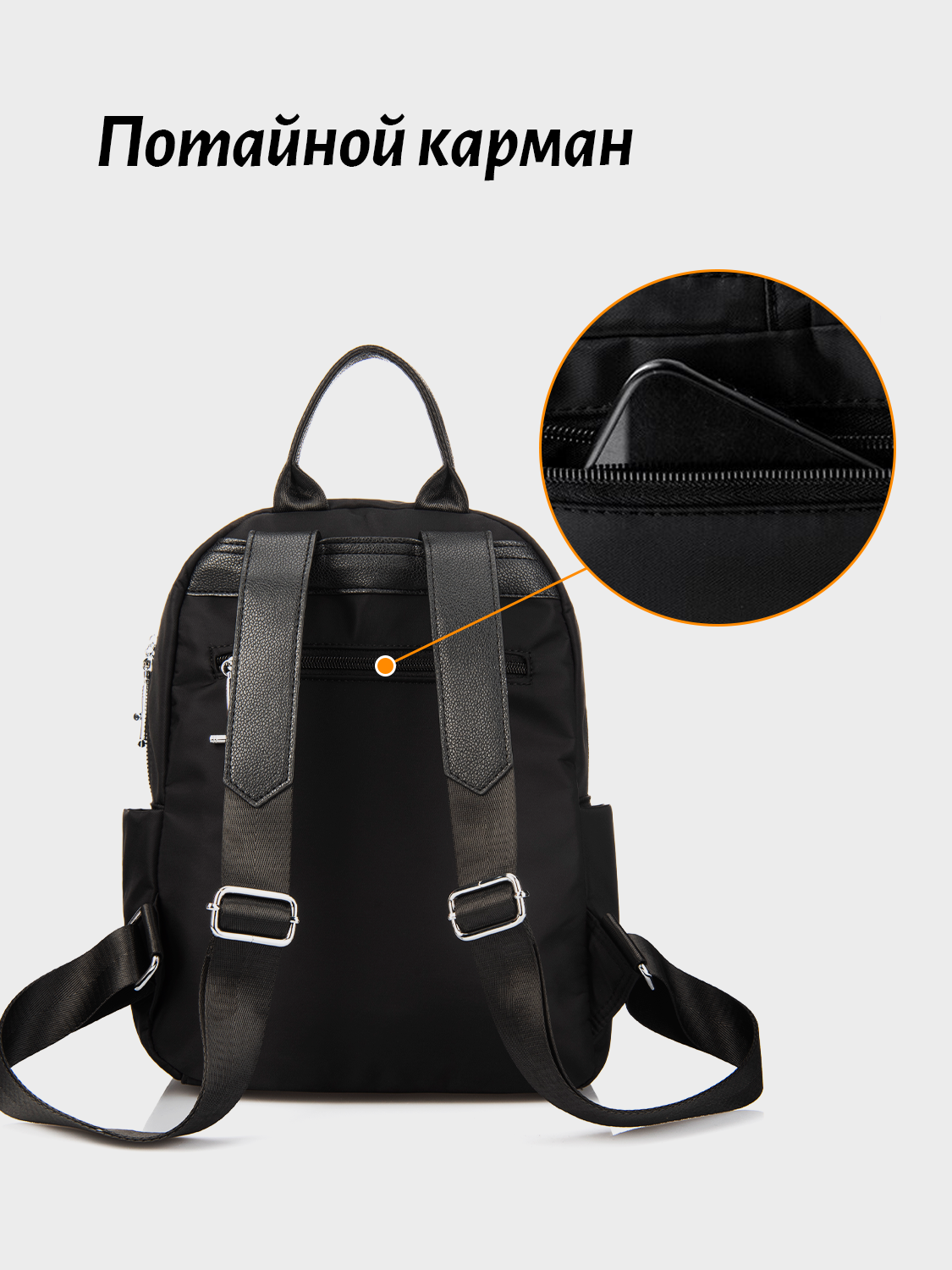 Городской женский рюкзак ROB&S, текстильный, полиэстер, черный