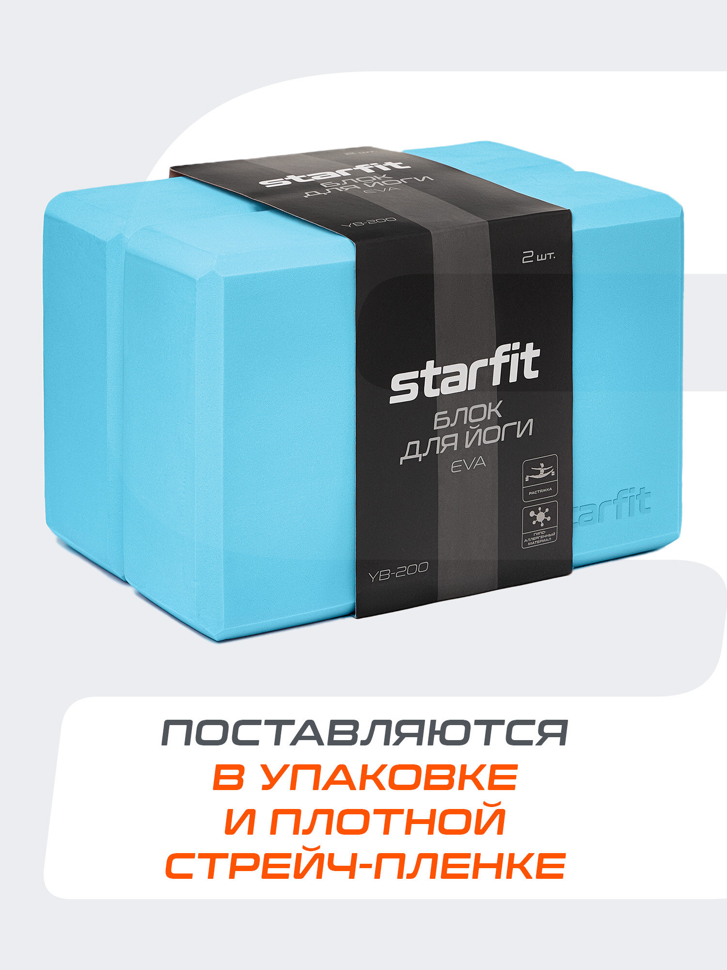Купить Блок для йоги STARFIT YB-200 EVA, 8 см, 115 гр, 22,5х15 см, синий пастель, 2 шт