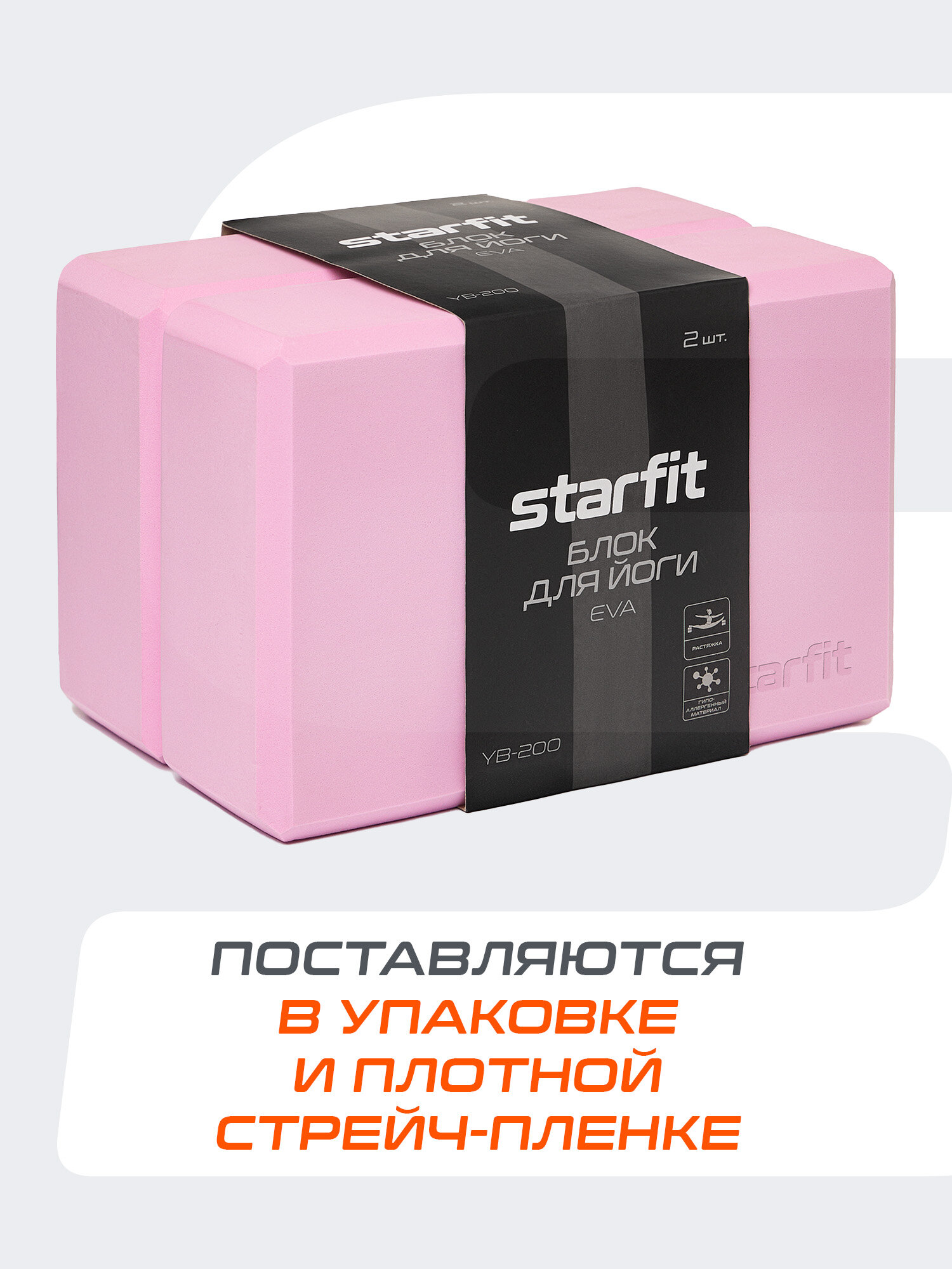 Купить Блок для йоги STARFIT YB-200 EVA, 8 см, 115 гр, 22,5х15 см, розовый, 2 шт