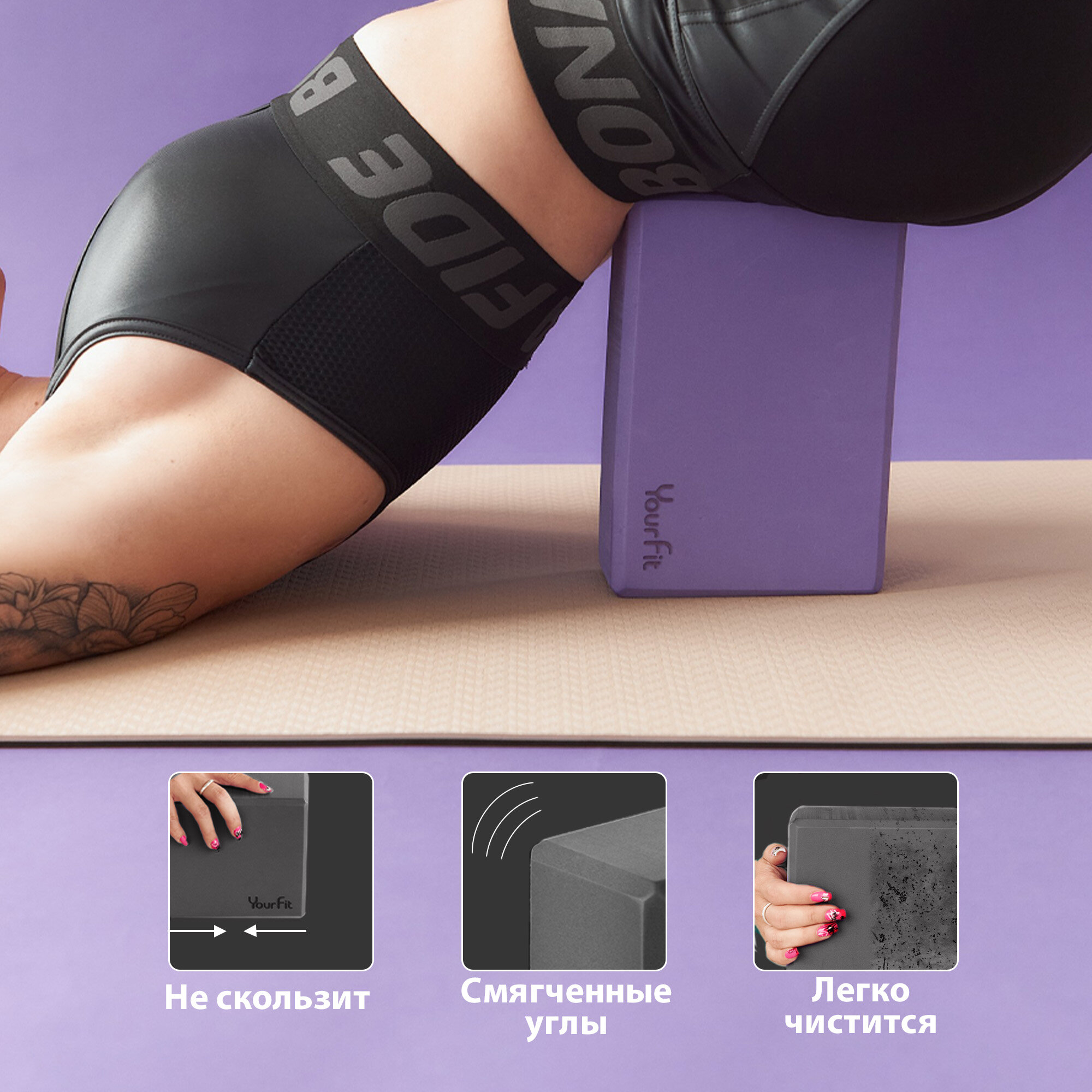 Блок для йоги Yourfit, фиолетовый