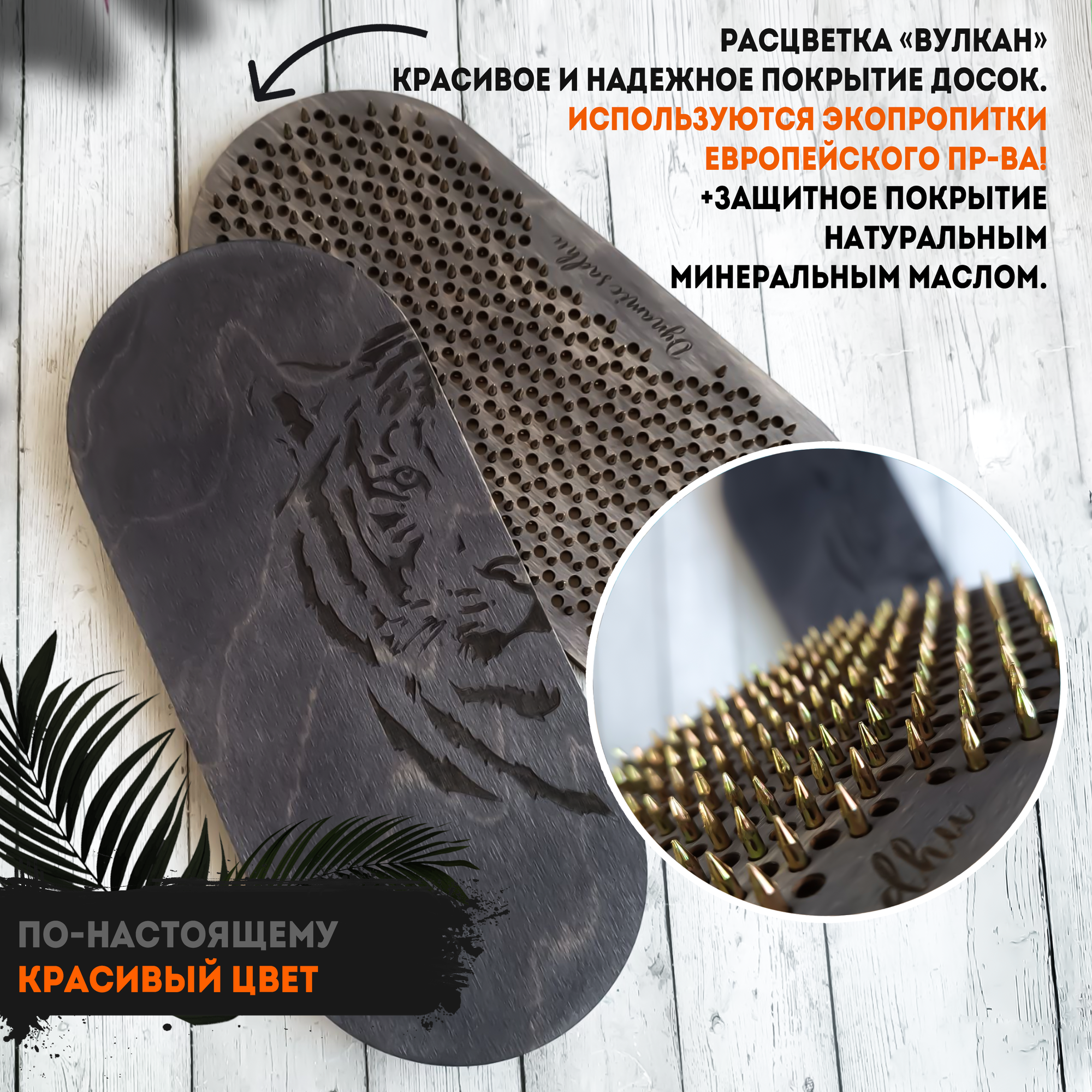 Доски Садху Анатомические, шаг 10 мм, гвозди Пули, гравировка тигр. Для стояния на гвоздях и йоги. Для начинающих, до 46 р ноги (Вулкан)