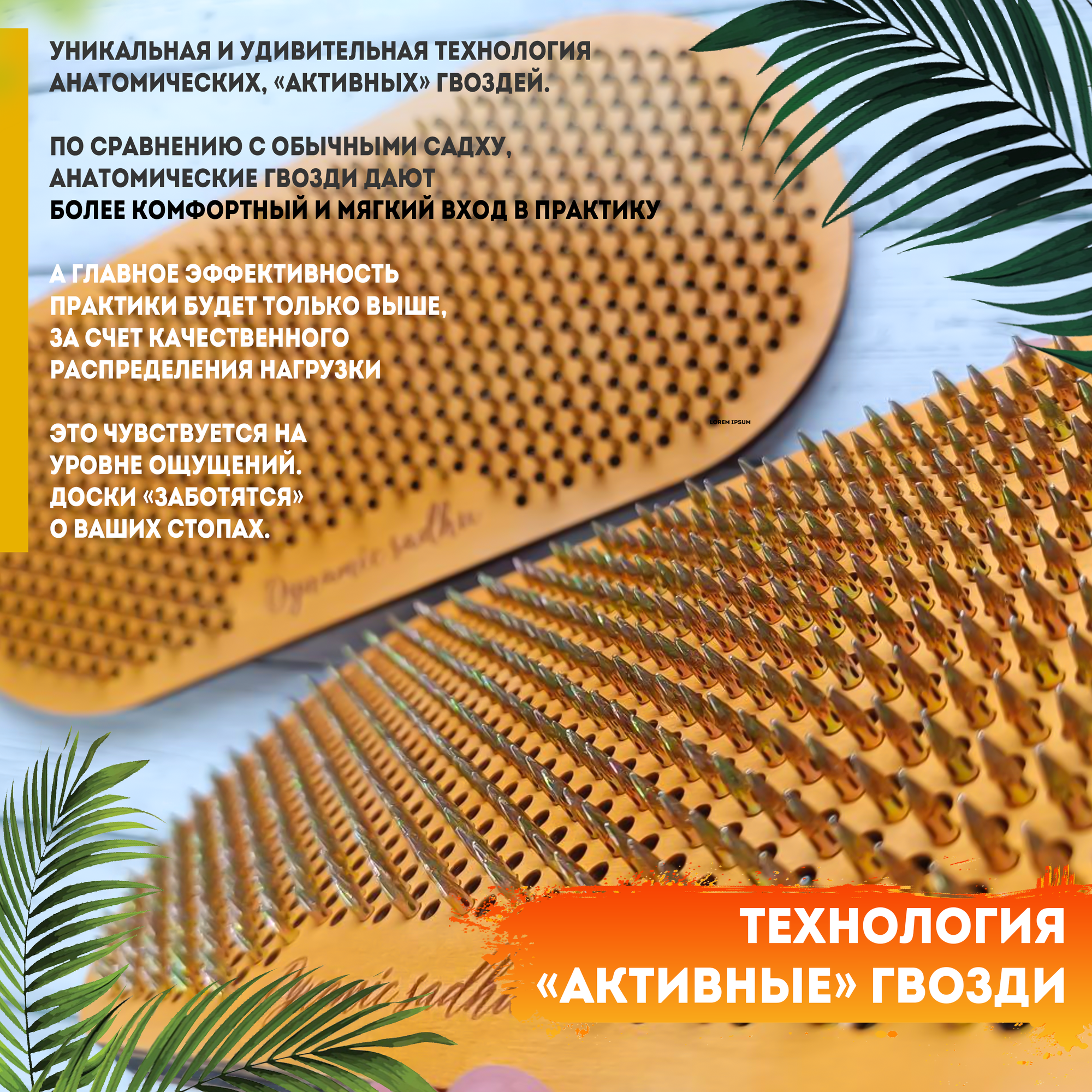 Доски Садху Анатомические, шаг 8 мм, гвозди Пули. Для стояния на гвоздях и йоги. Для начинающих, до 46 р ноги (Рассвет)