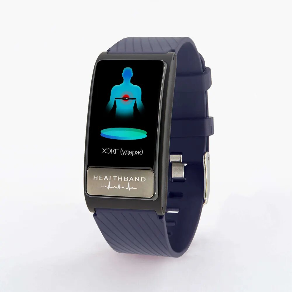 Браслет здоровья с режимом холтера, с измерением давления, пульса, кислорода, снятием ЭКГ и контролем аномального пульса Healthband Pro №10, синий интересное: