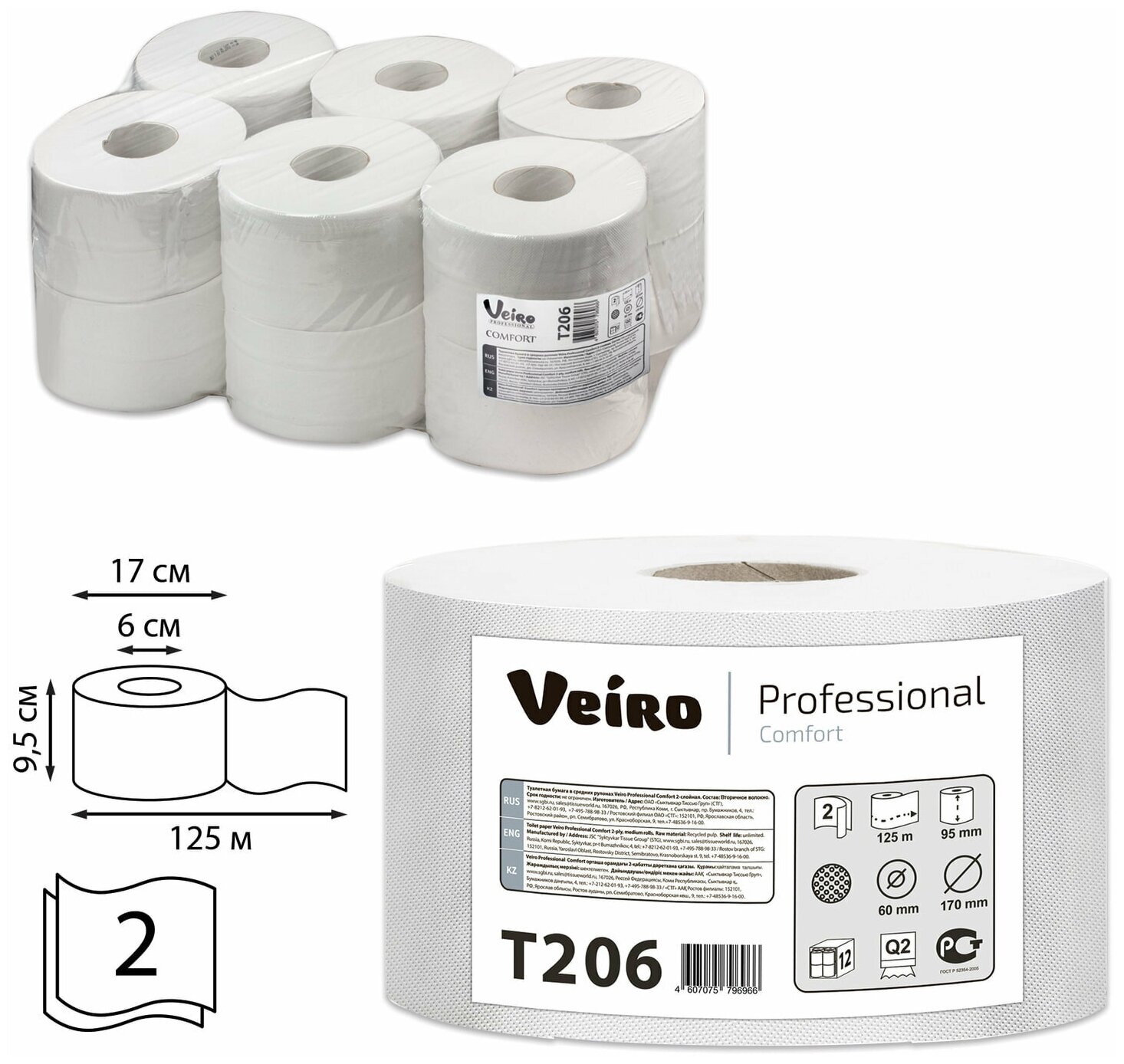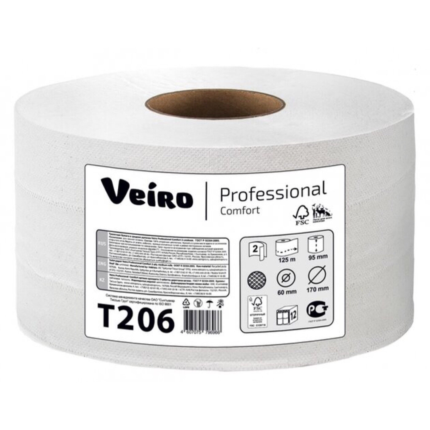 T206 Туалетная бумага в средних рулонах Veiro Professional Comfort двухслойная (12 рул х 125 м) интересное: