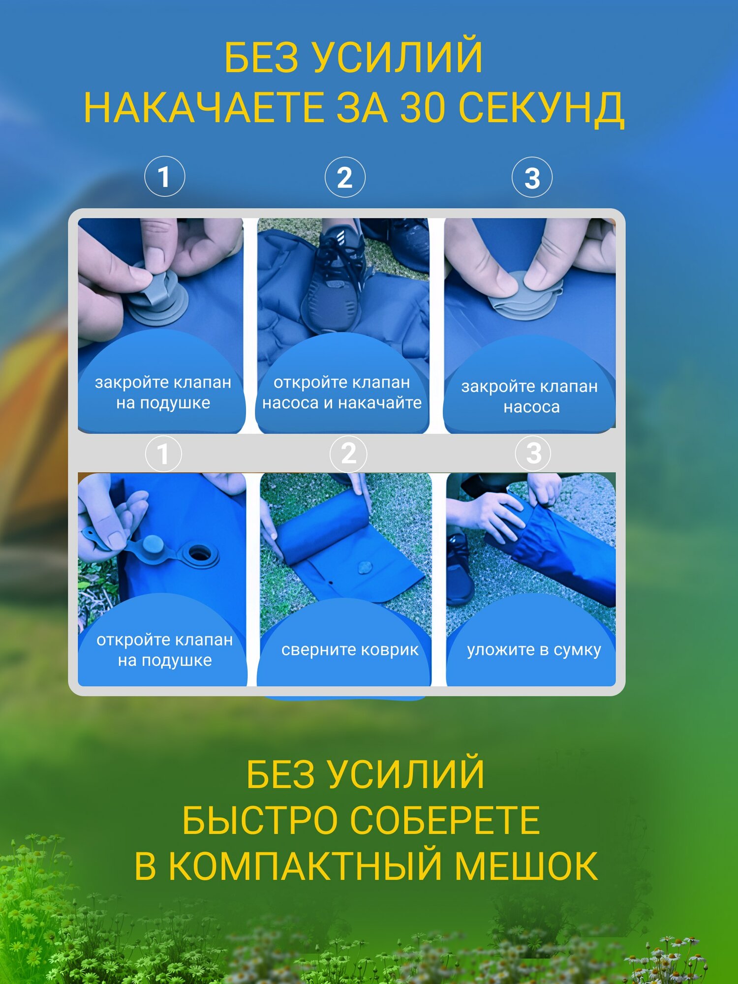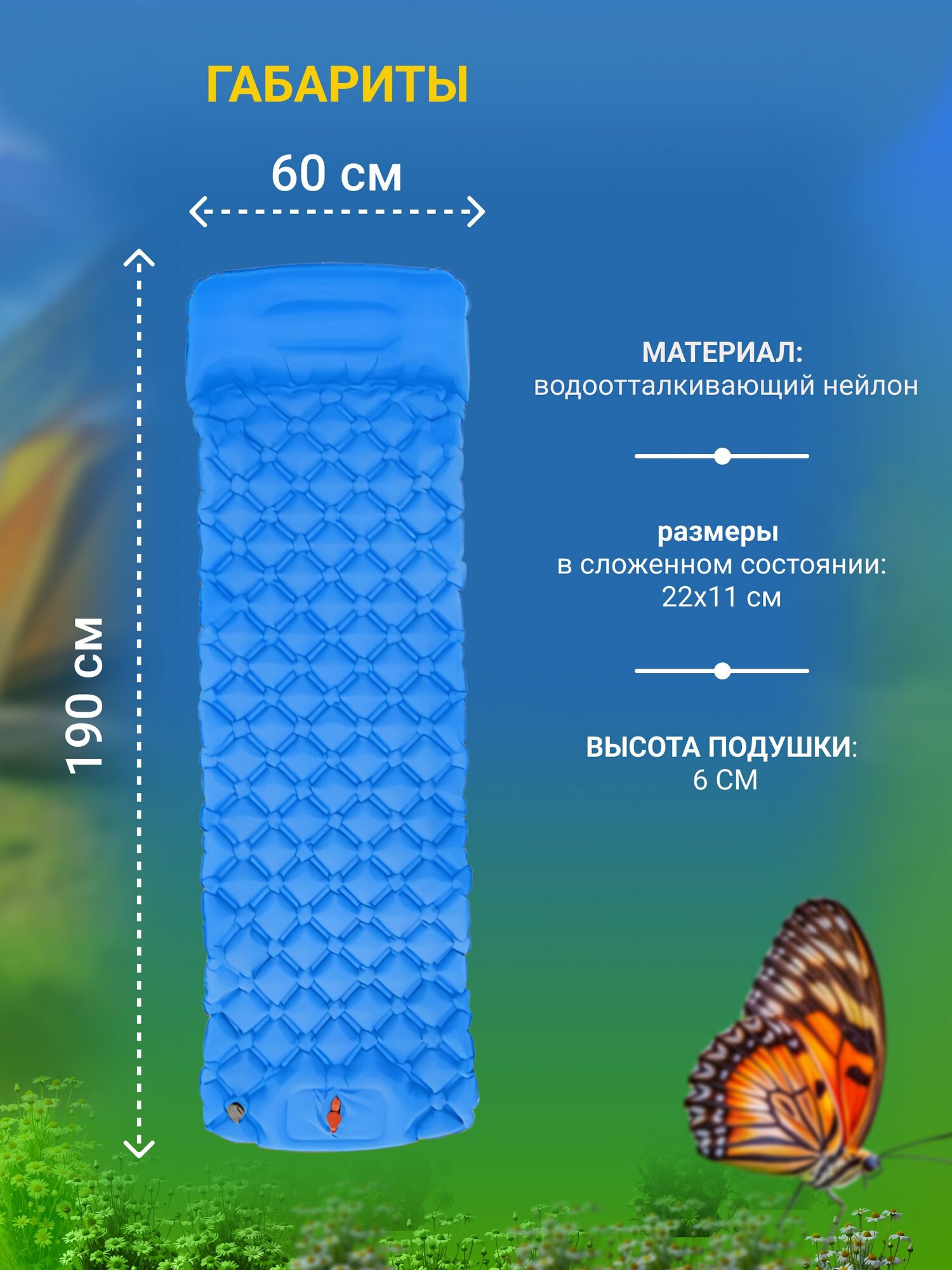 Коврик туристический самонадувающийся односпальный, голубой интересное: