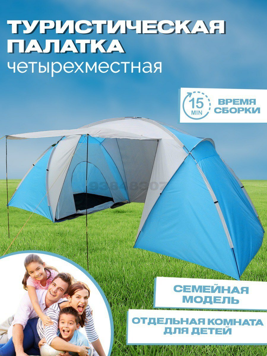 Палатка двухкомнатная, 4-х местная с тамбуром, 2-хслойная, Jovial 1455, 220Х450х200 интересное: