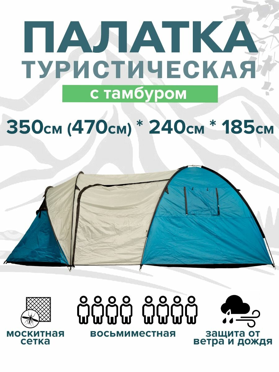 Купить Палатка 8-местная двухкомнатная Арктика 314 / 8-местная туристическая / двухкомнатная с тамбуром / для походов / летняя / туристическая кемпинговая