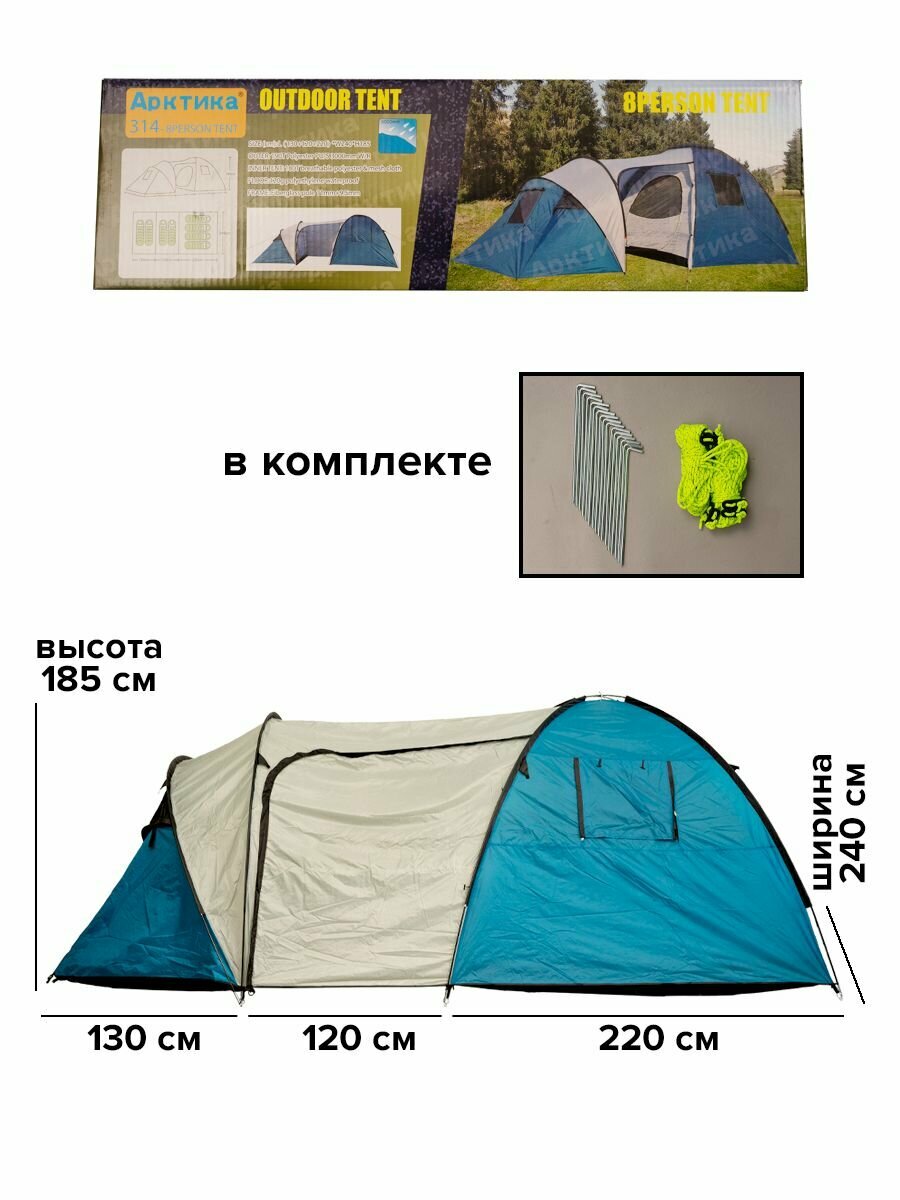 Палатка 8-местная двухкомнатная Арктика 314 / 8-местная туристическая / двухкомнатная с тамбуром / для походов / летняя / туристическая кемпинговая интересное: