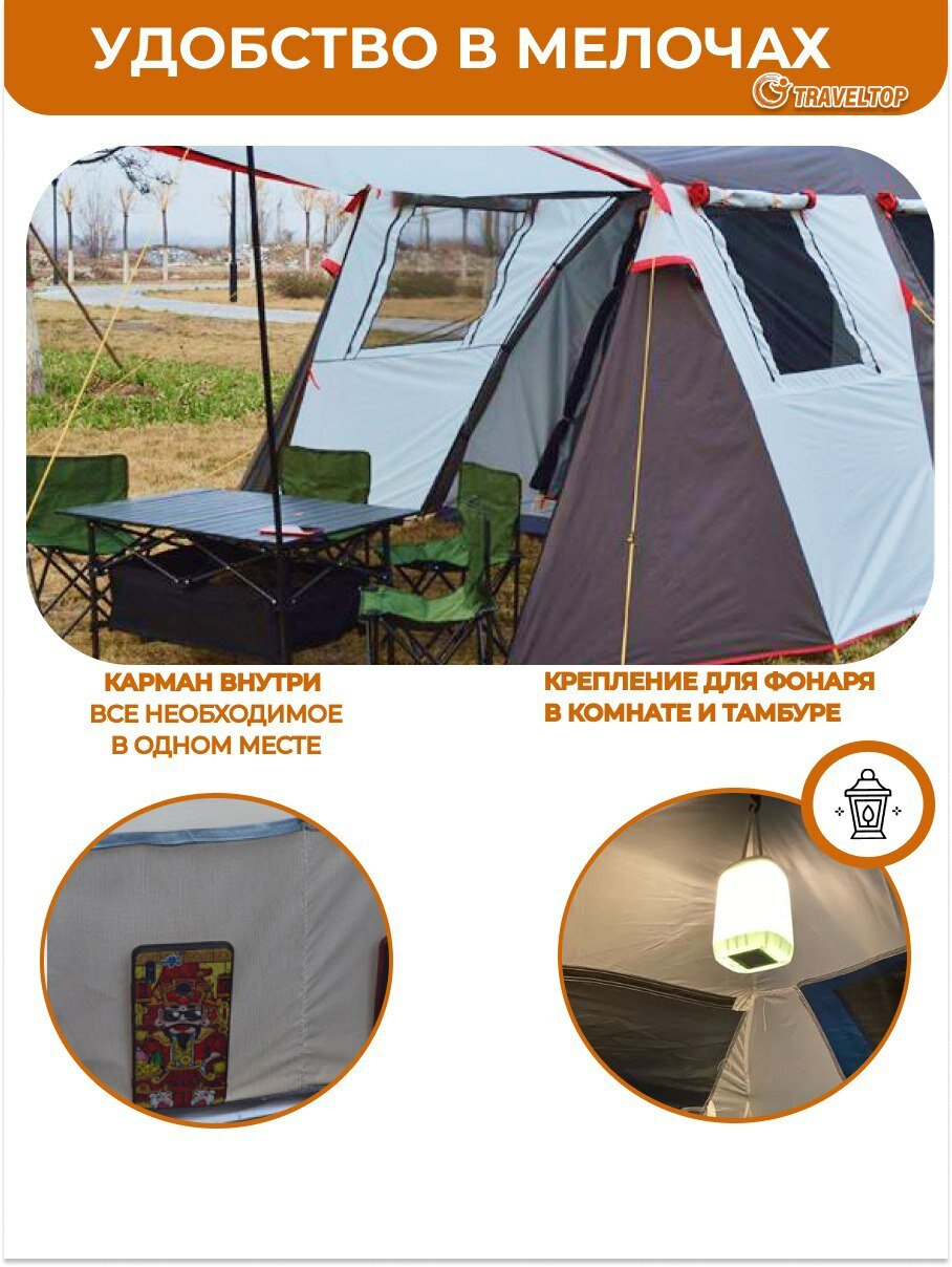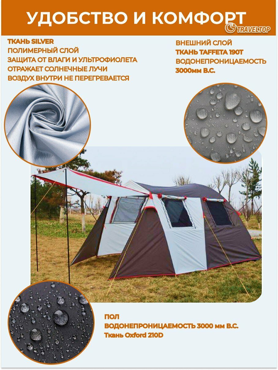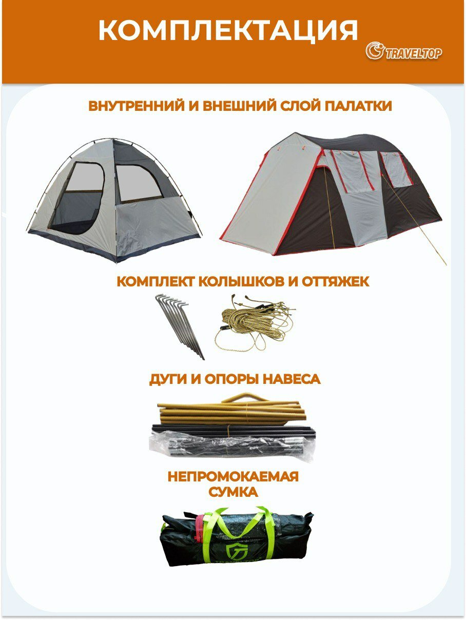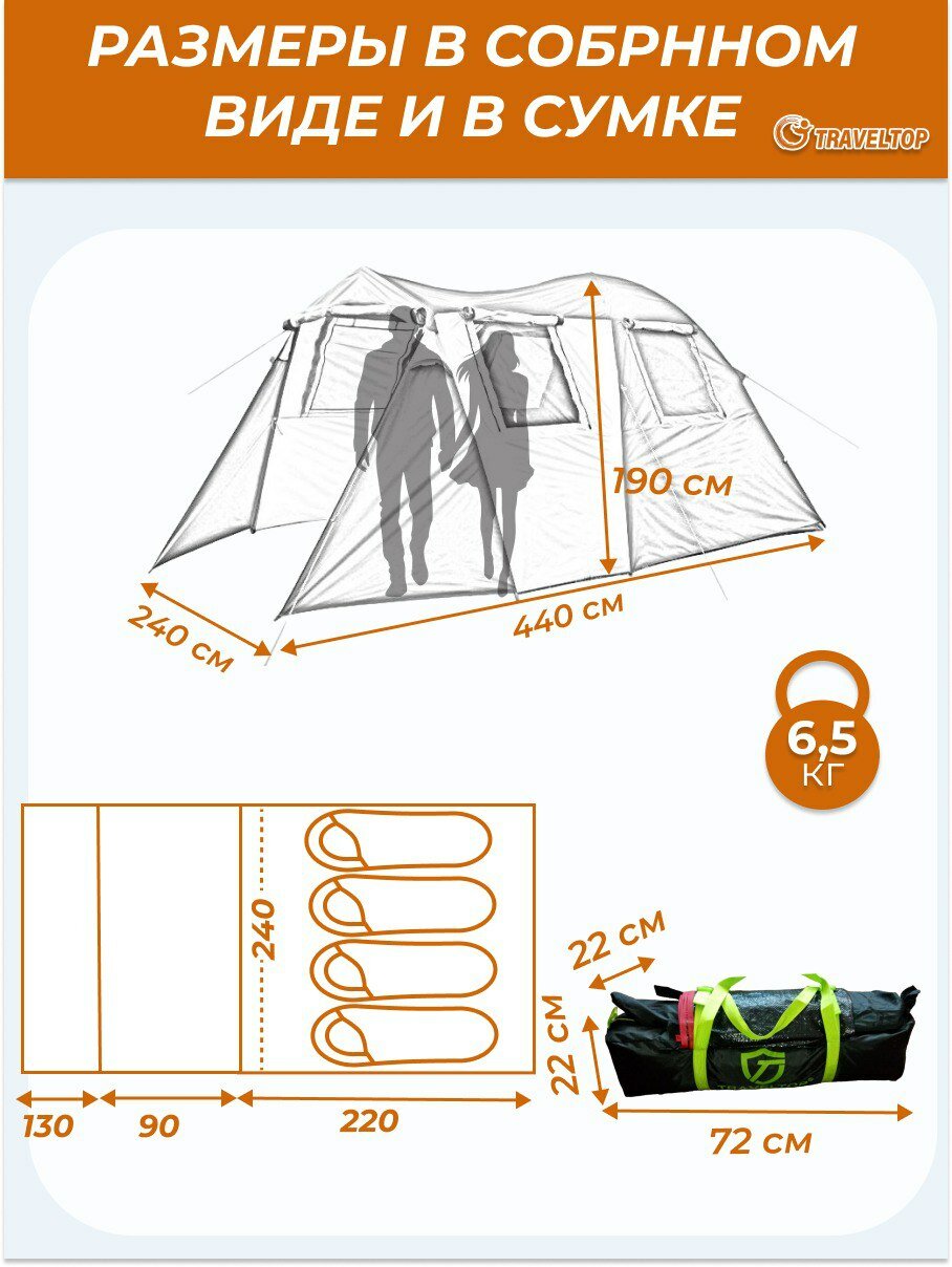Палатка для туризма 4-местная Traveltop FD-1905, 440х240х190 интересное: