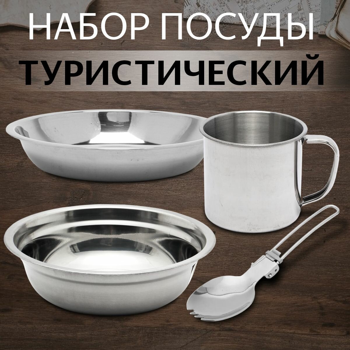 Купить Набор туристический, посуда походная. В комплекте миска, тарелка, кружка, ложка-вилка.