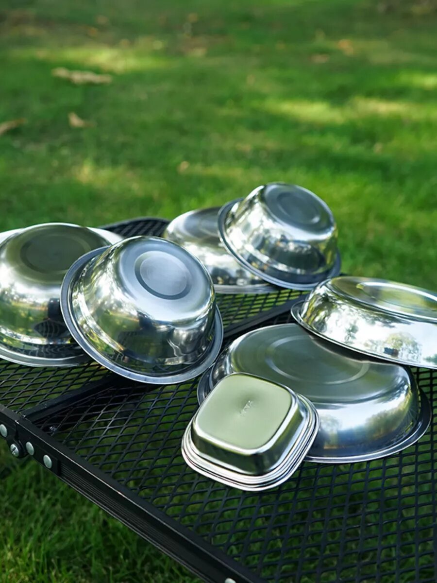 Набор тарелок и мисок туристический из нержавеющей стали интересное: