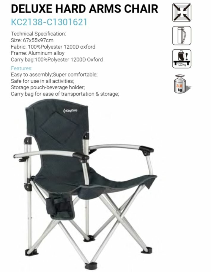 Кресло туристическое раскладное со спинкой KingCamp KC2138 Deluхe Chair CANNA, 67х55х97см интересное:
