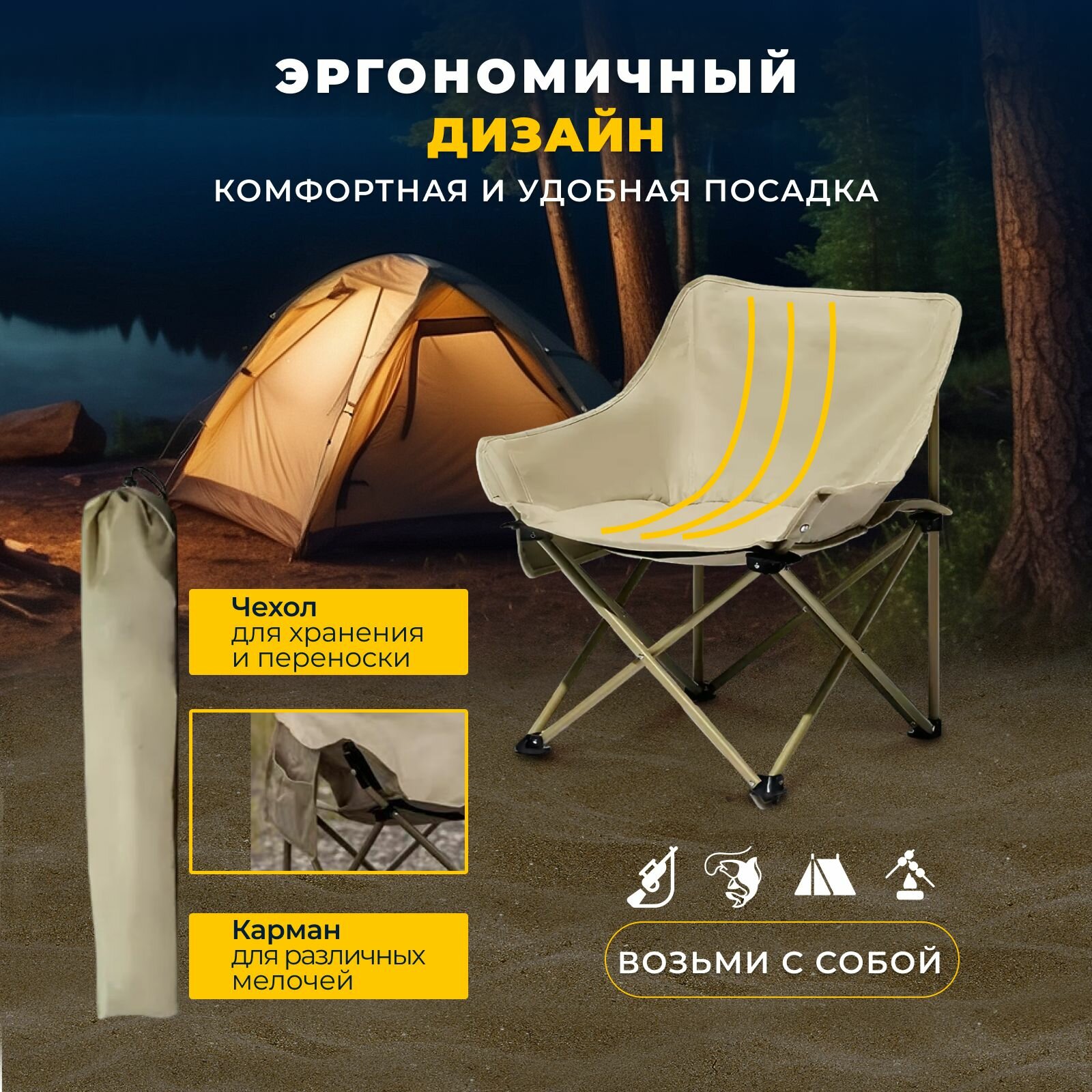 Стул складной туристический со спинкой для рыбалки интересное: