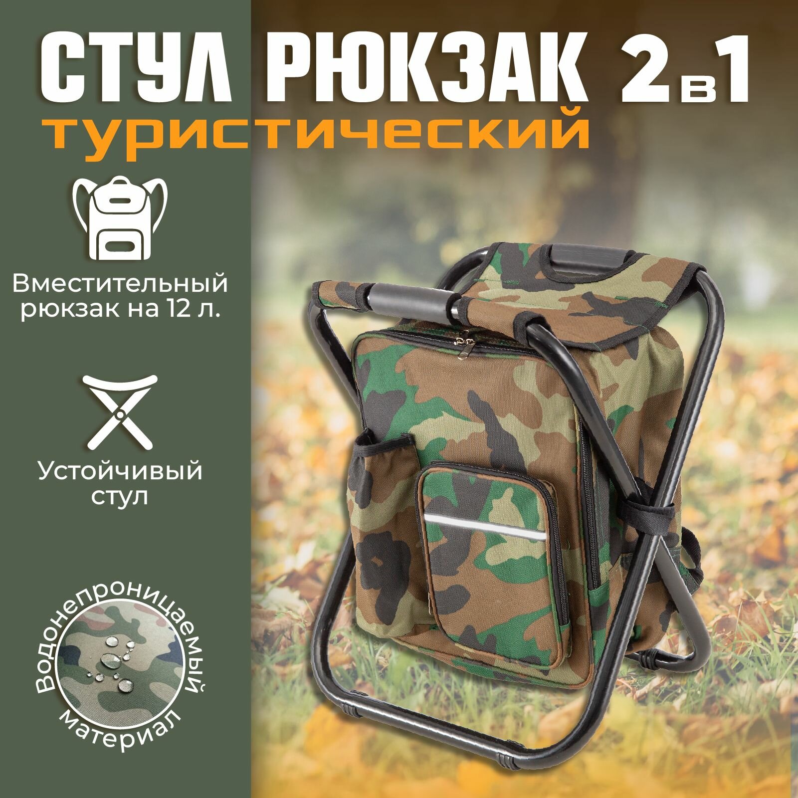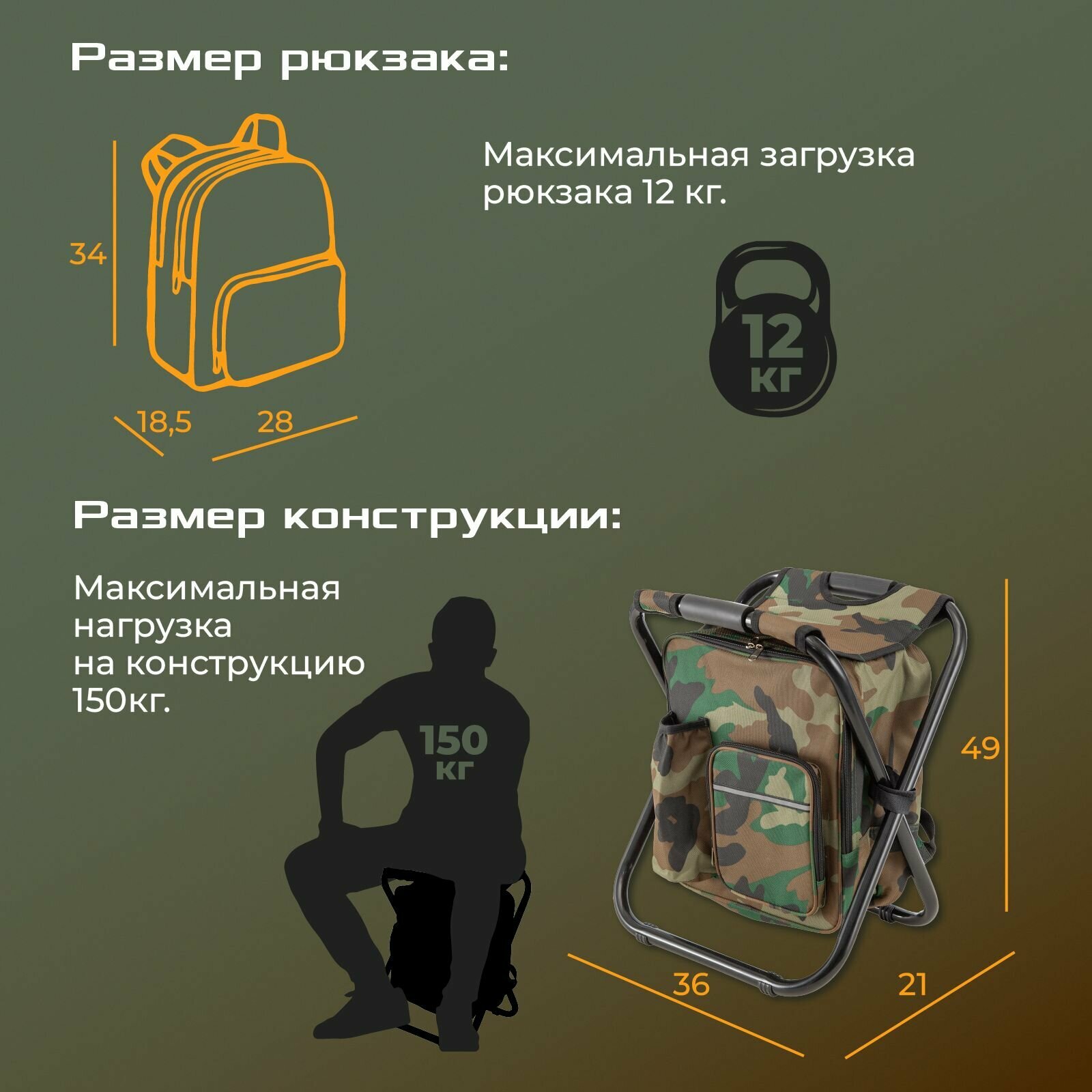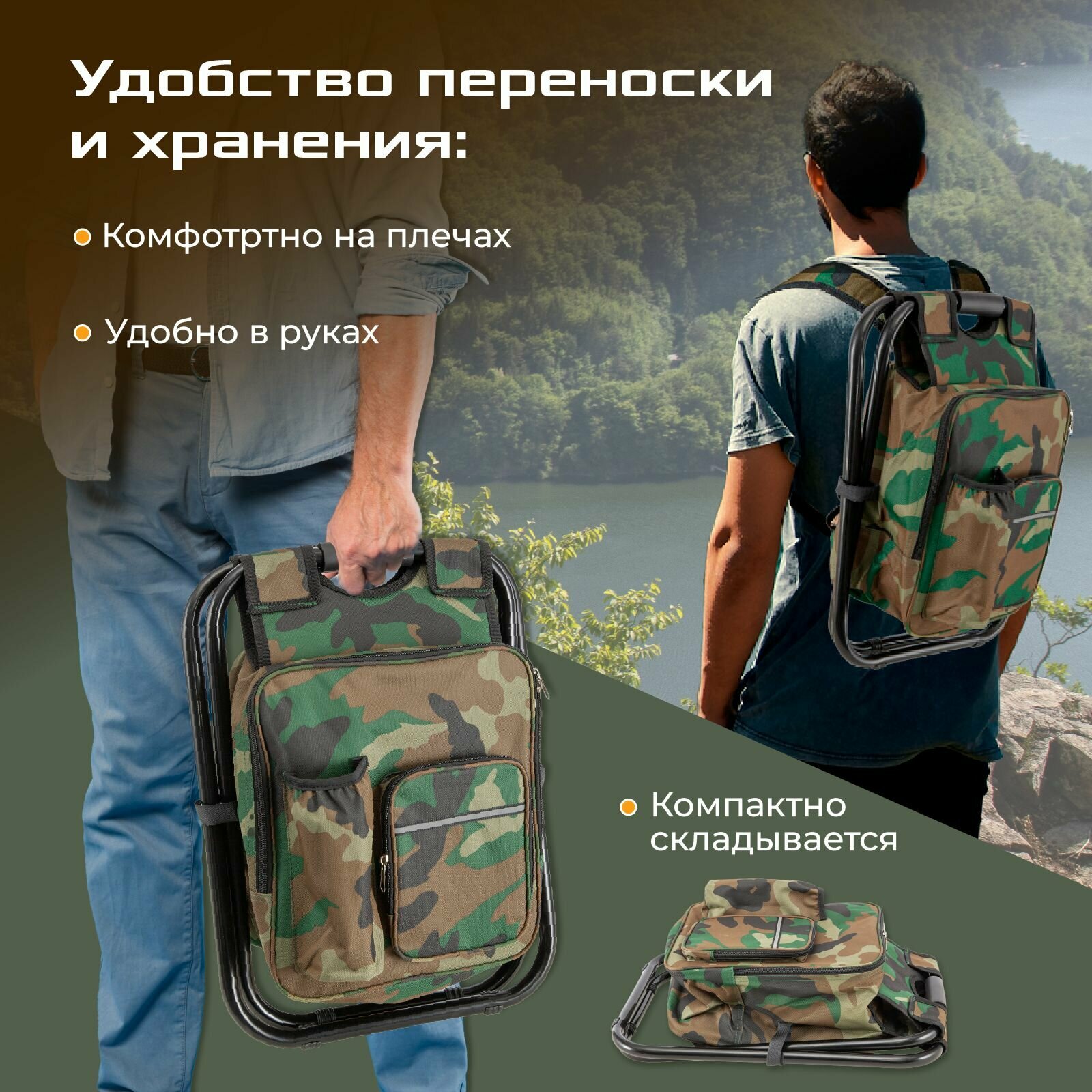 Рюкзак со стулом для рыбалки и охоты, стул складной туристический для отдыха, рыболовный стул-рюкзак, походный, камуфляж, хаки, Ами Мебель интересное: