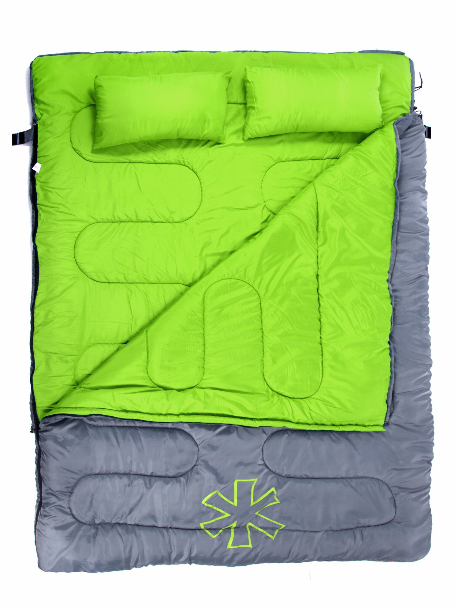 | Дополнительная информация | возможность отстегивать две части спальника и получить два одноместных спальника, 2 подушки в комплекте |
