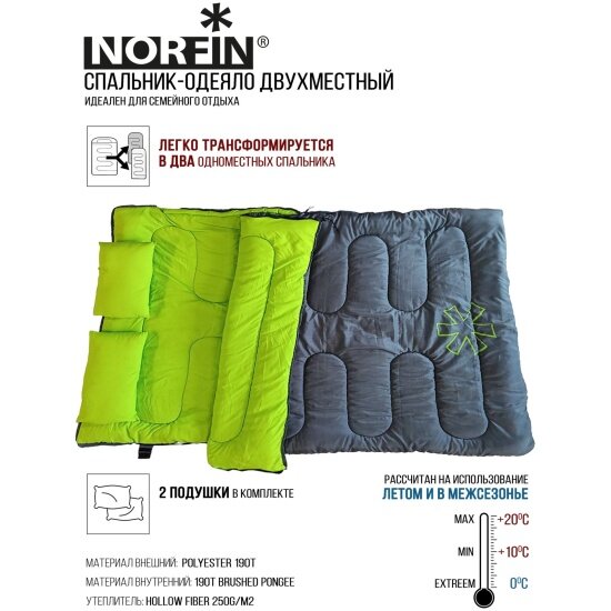 Мешок-одеяло Norfin ALPINE COMFORT DOUBLE 250 GREEN спальный, 2 подушки в комплекте интересное: