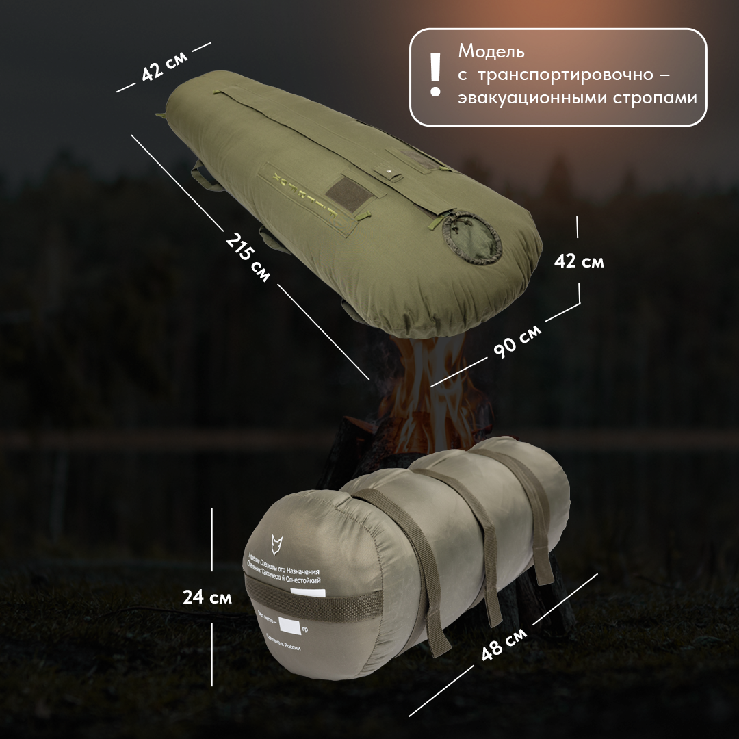 "Огнестойкий спальный мешок Vestigator" со стропами 215 см интересное: