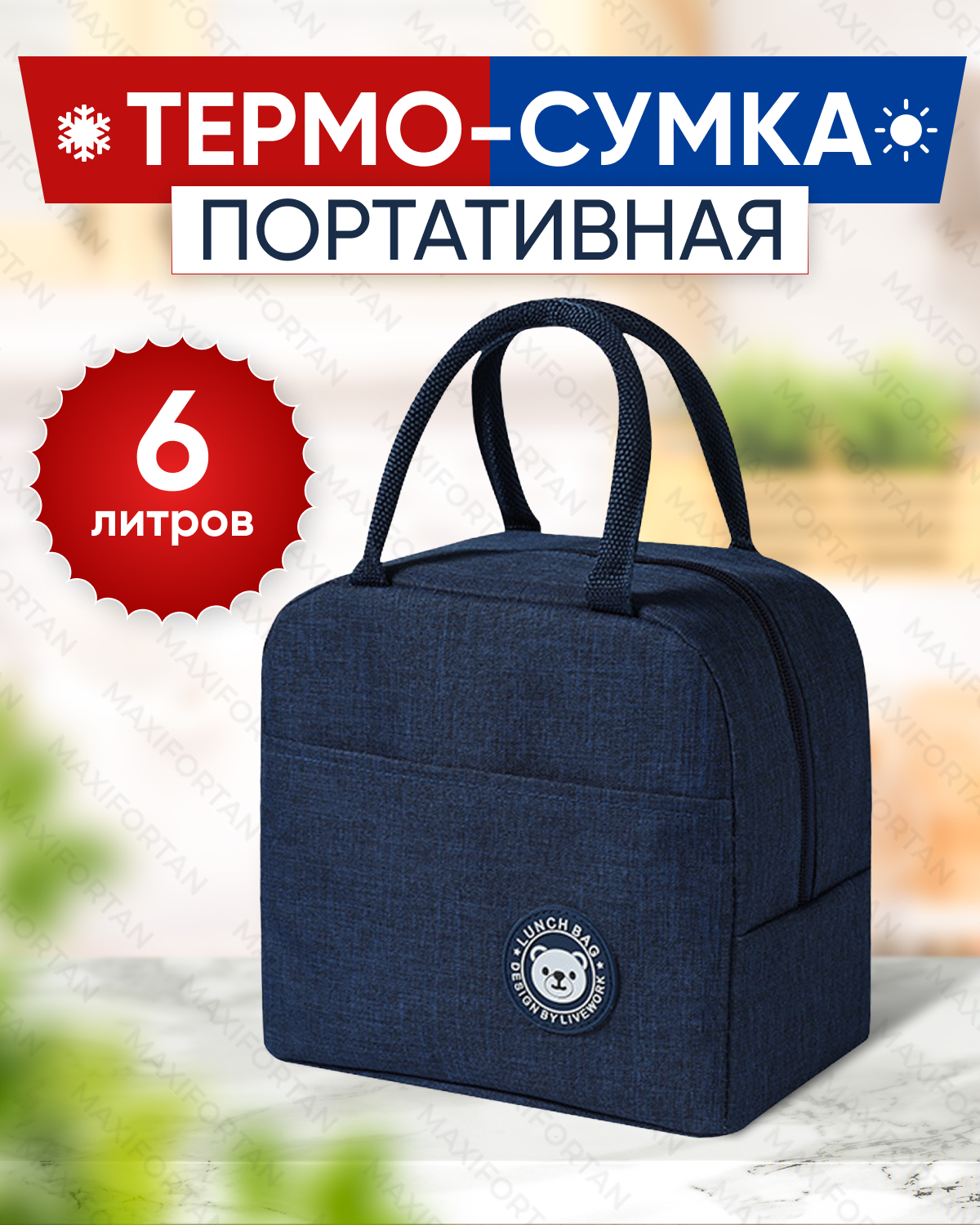 Купить Сумка холодильник F-MAX объемом 6 литров, крепкими водонепроницаемыми швами для сохранения продуктов в тепле или холоде, синяя