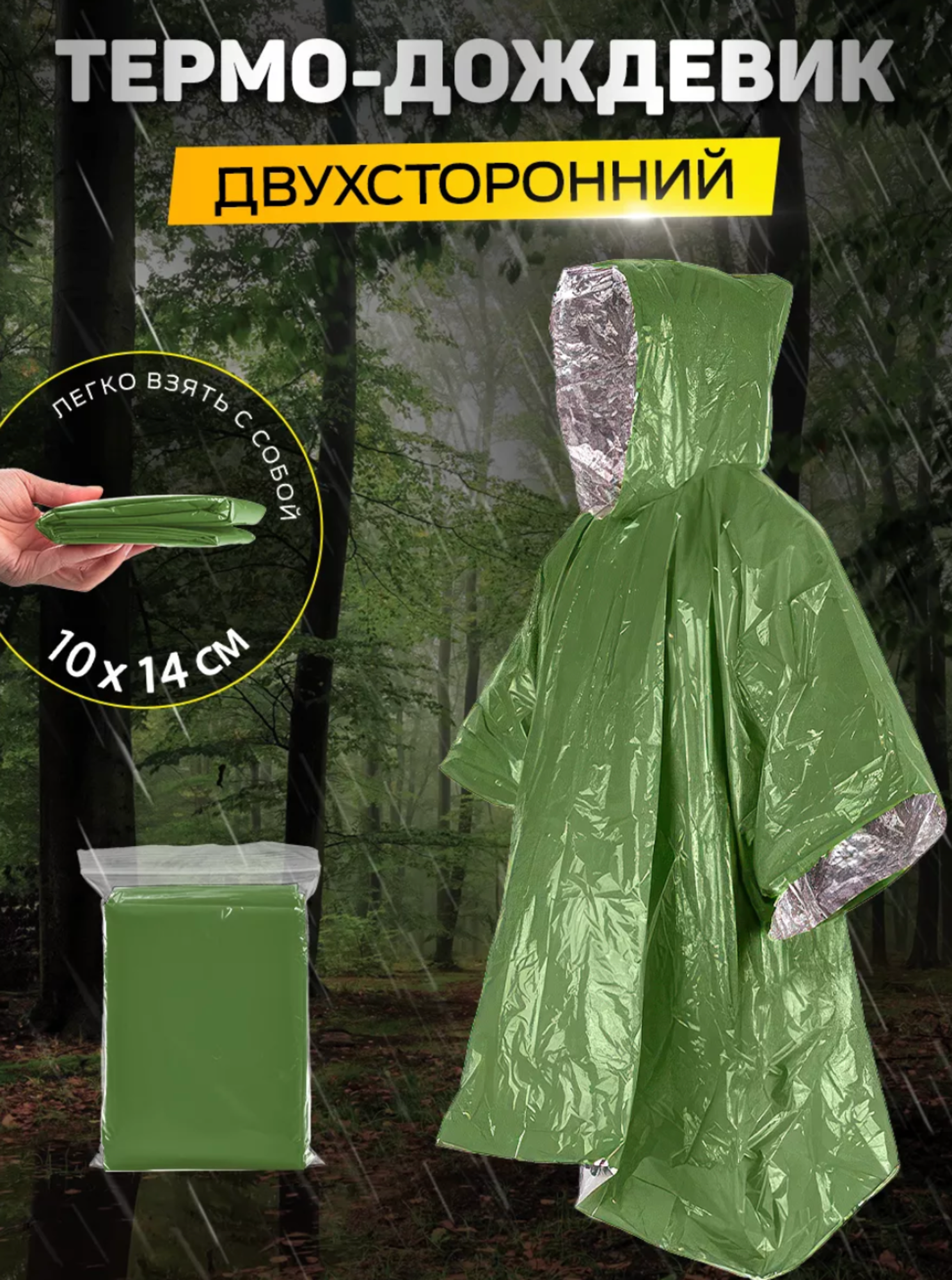 термо-дождевик пончо двухсторонний, зеленый интересное: