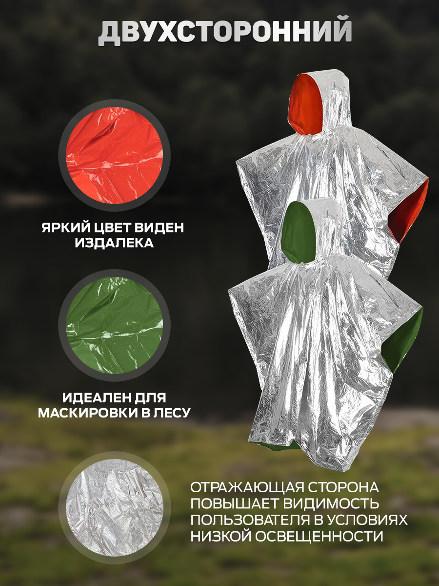 Купить термо-дождевик пончо двухсторонний, комплект 2 шт
