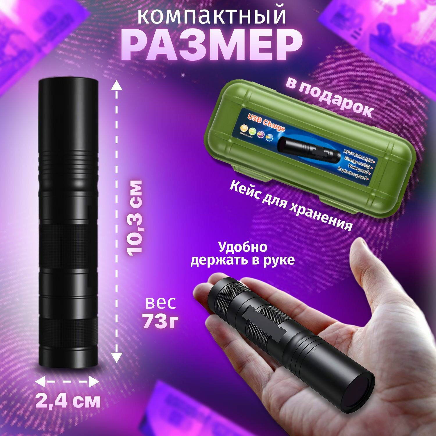 Ультрафиолетовый фонарик на аккумуляторе, компактный УФ фонарь, стекло Вуда интересное: