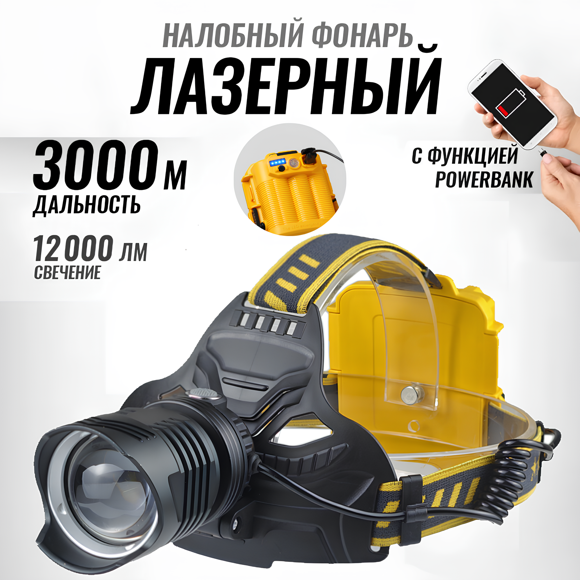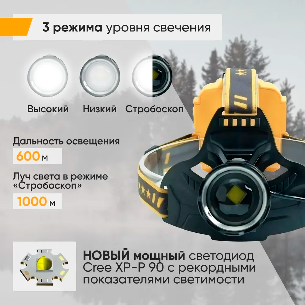 Мощный налобный аккумуляторный фонарь SimpleShop, встроенный PowerBank, 600 м дальность, 3 аккумулятора 18650 интересное: