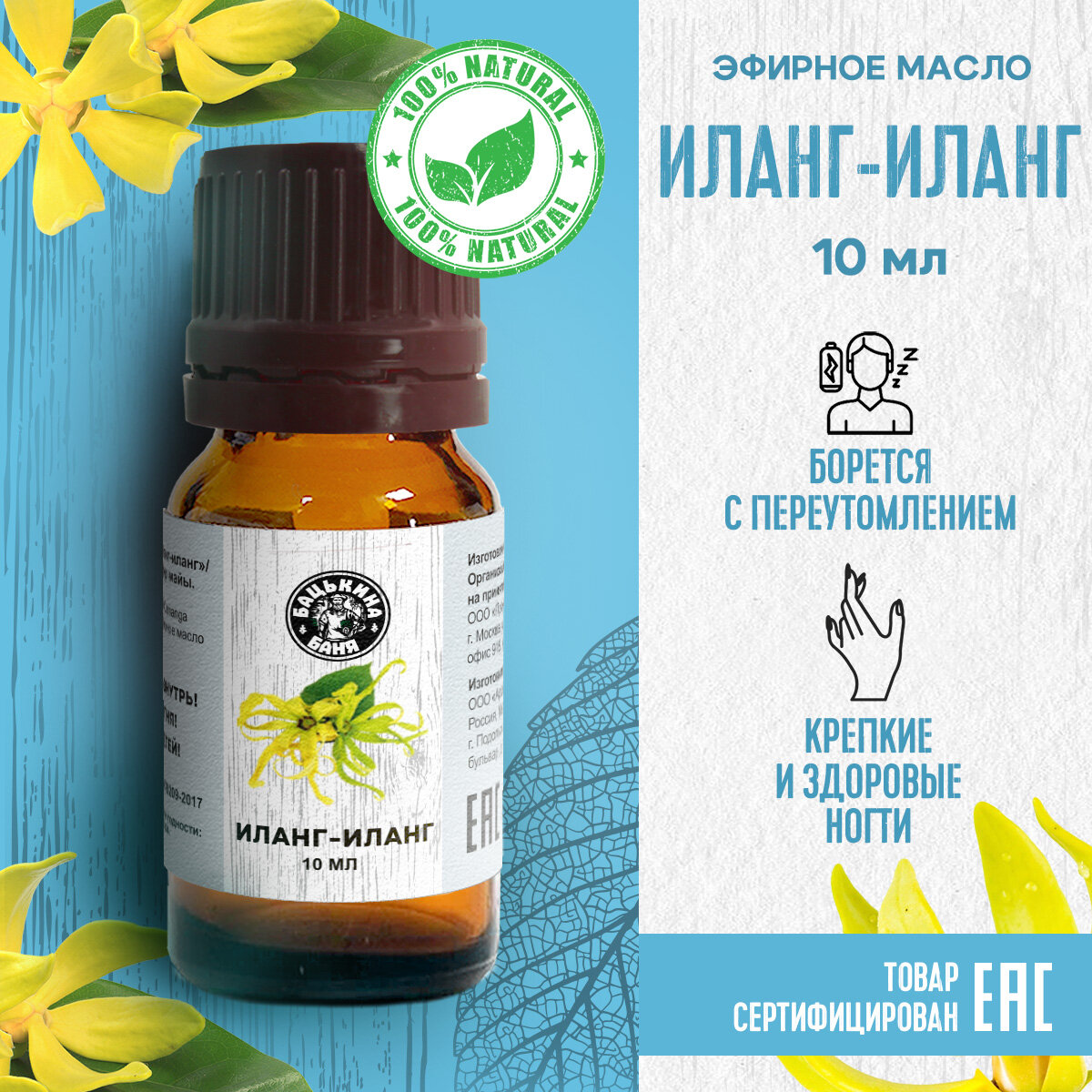 Эфирное масло Иланг-Иланг. Эфирные масла натуральные для бани и сауны, увлажнителя воздуха, аромалампы. Ароматизатор для дома, аромамасло