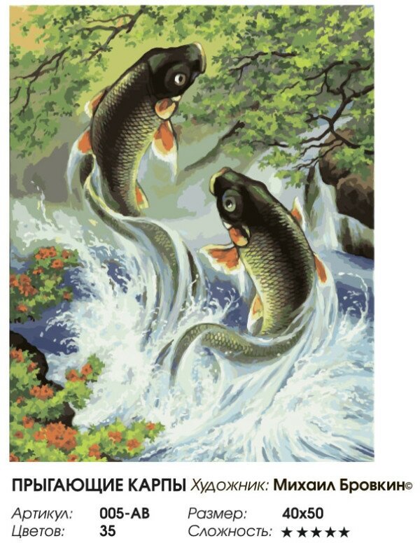Ниже Вы можете прочитать отзывы на Раскраска по номерам 40х50 см 005-АВ Прыгающие карпы, ознакомится с подробными характеристиками, посмотреть интересные обзоры и фотографии на Раскраска по номерам 40х50 см 005-АВ Прыгающие карпы.